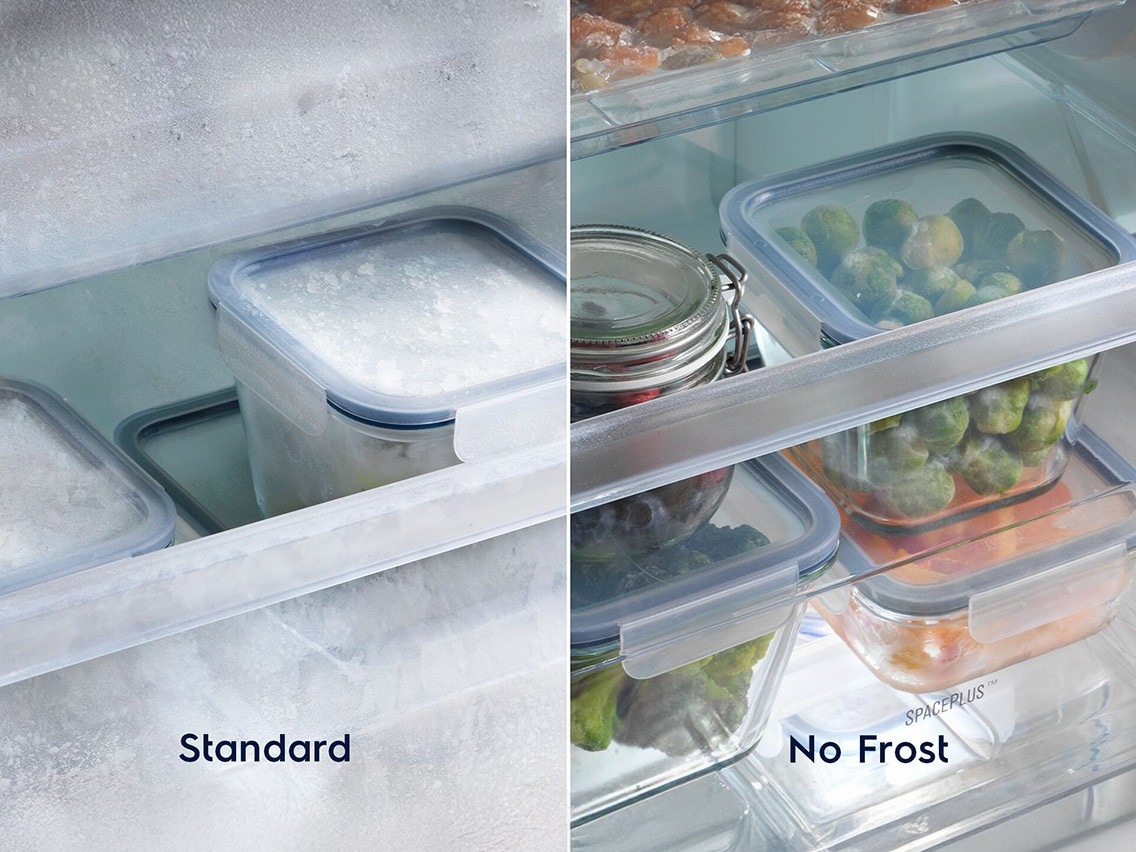 - Toiminto: Tekniikka kierrättää kuivaa ilmaa ja poistaa kosteutta, mikä estää jään ja huurteen muodostumista pakastimen seinille ja ruokiesi pinnoille.