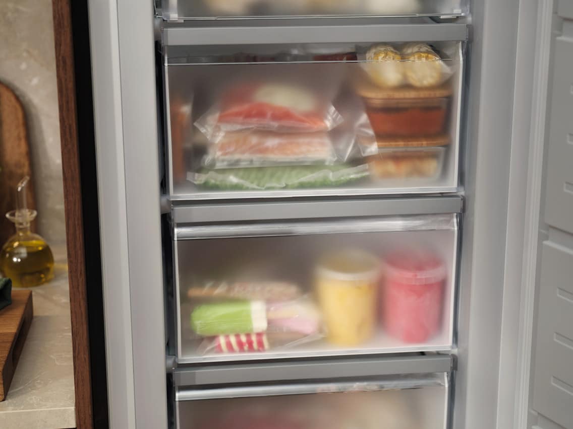 Vapaasti sijoitettavat pakastimemme voi sijoittaa juuri sinne, minne ne parhaiten sopivat. Säilytä kätevästi kaikkea viikon eväsrasioista leipään ja sesongin raaka-aineisiin. Älykäs pakastustekniikka varmistaa tasaisen lämpötilan koko pakastimassa, jotta ruoka säilyy pidempään, säilyttäen myös maut ja ravintoaineet.