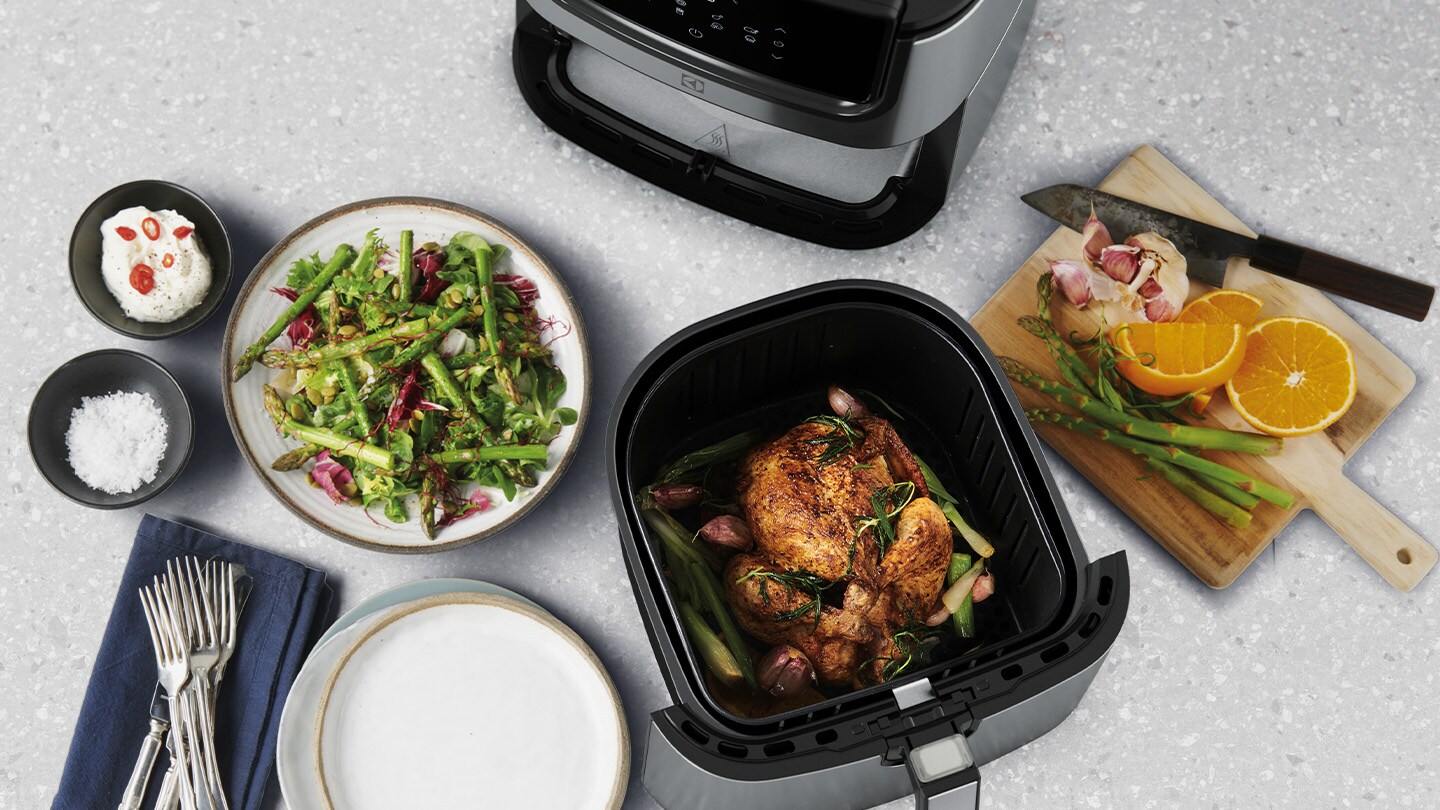 Airfryerin avulla friteeraat, grillaat ja paistat käyttäen vähän tai ei lainkaan öljyä. Se toimii yhtä hyvin ranskalaisten perunoiden, bataattien, kanan, kalan ja jopa kananmunien kanssa. Hieman terveellisempää, mutta erittäin maukasta.