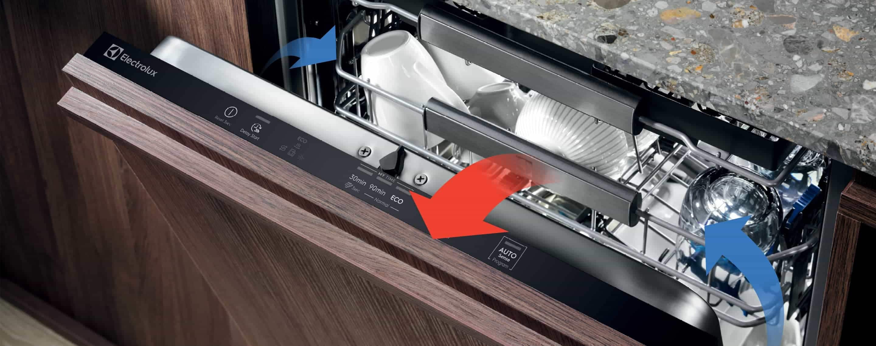 AirDry -tekniikka käyttää luonnollista ilmavirtaa täydelliseen kuivaukseen ja kuivaa astiat jopa kolme kertaa tehokkaammin kuin luukun ollessa koko ohjelman ajan suljettu. Luukku avautuu automaattisesti 10 cm ohjelman lopussa ja kierrättää huoneilmaa, mikä antaa erinomaisen kuivaustuloksen.