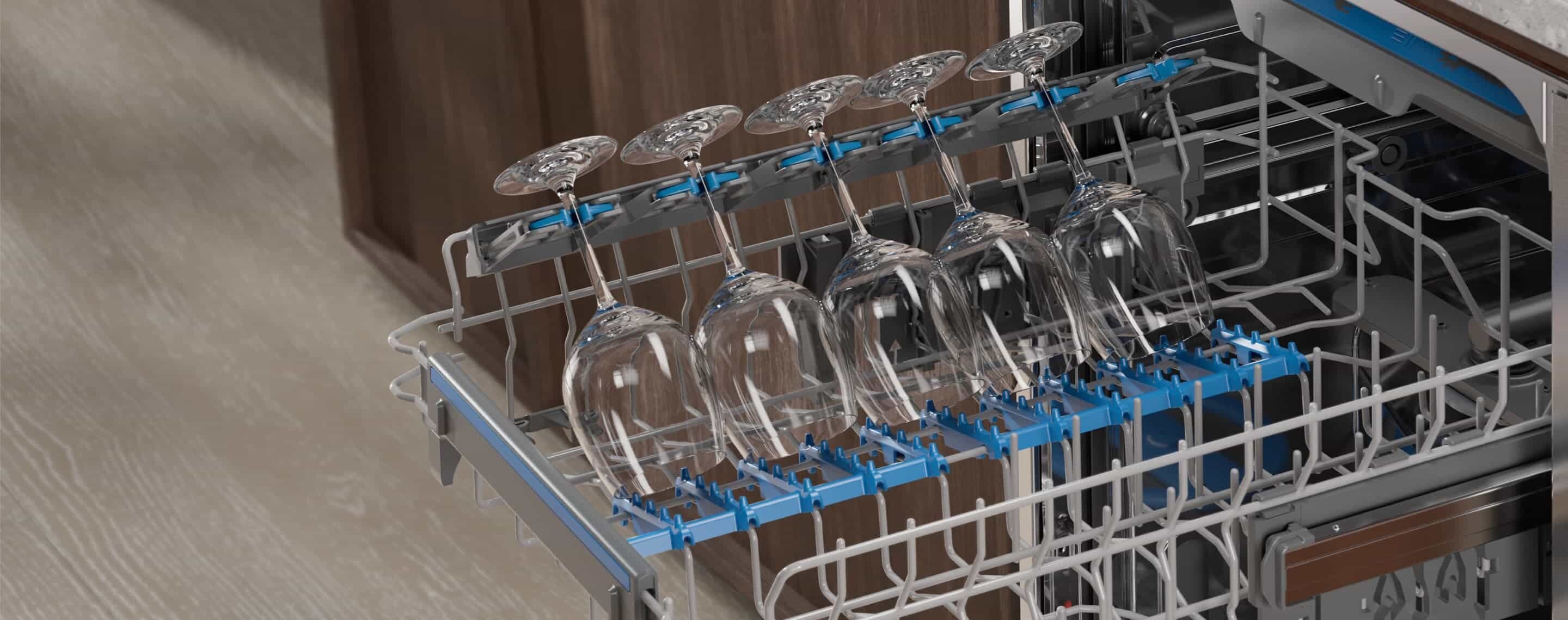 Lasisi tarvitsevat hellävaraista hoitoa, kun ne on pestävä. 700 Pro -sarjan astianpesukoneen yläkorissa on SoftGrips -pidikkeet, jotka pitävät kiinni hienovaraisimmista ja herkimmistä laseistasi. Ne pitävät lasit paikallaan koko pesuohjelman ajan – turvassa kolhuilta ja tärinältä.