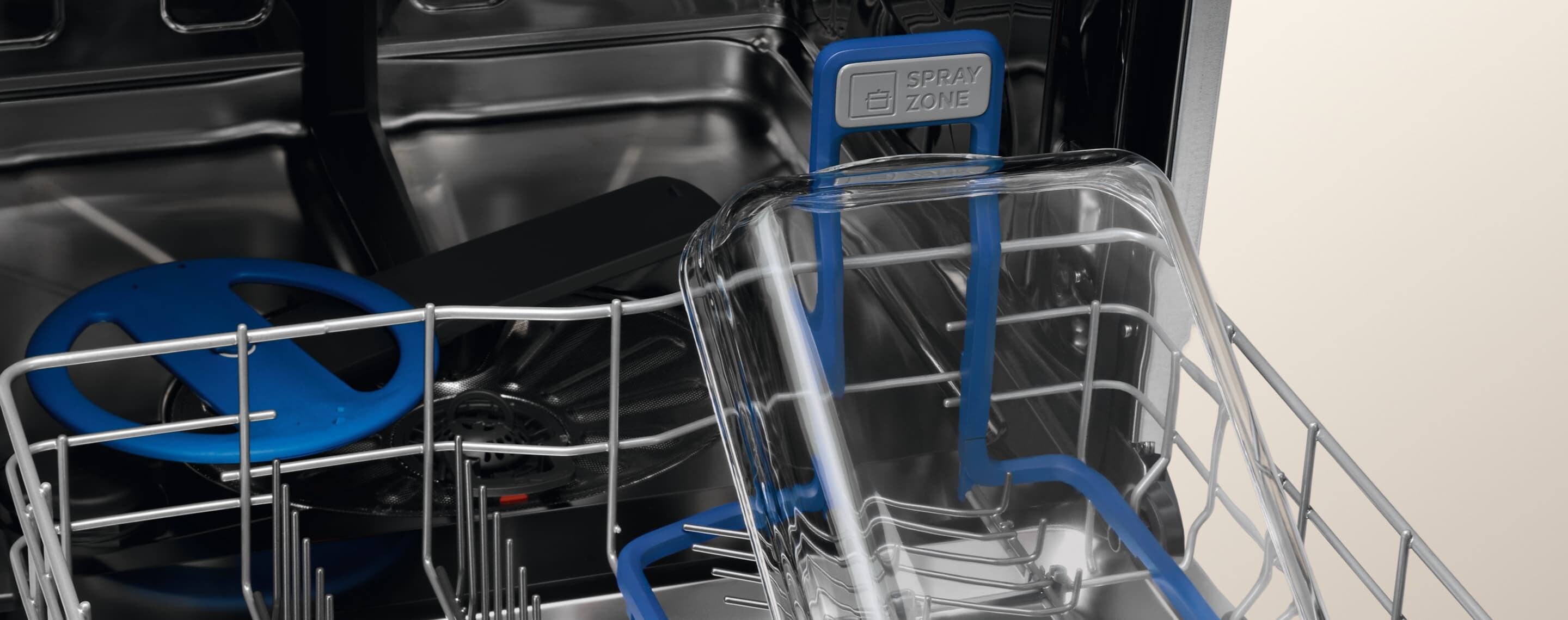 SprayZone -toiminnon ansiosta kattilat ja pannut puhdistuvat perusteellisesti. Tehokas vedenpaine puhdistaa tässä erityisen tarkasti suunnitellussa tilassa olevat astiat jopa kolme kertaa normaalia paremmin. Saat erinomaisen puhdistustehon, mikä tekee kaikista astioista tahrattoman puhtaita.