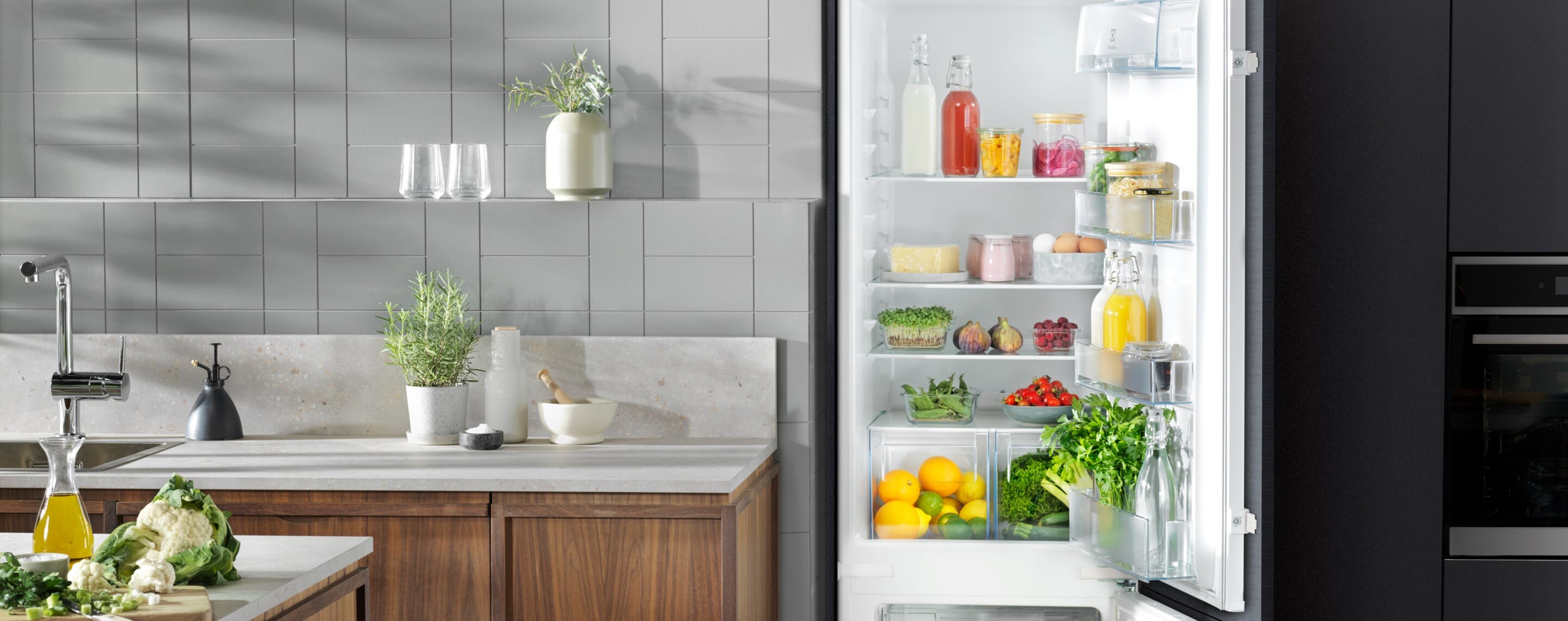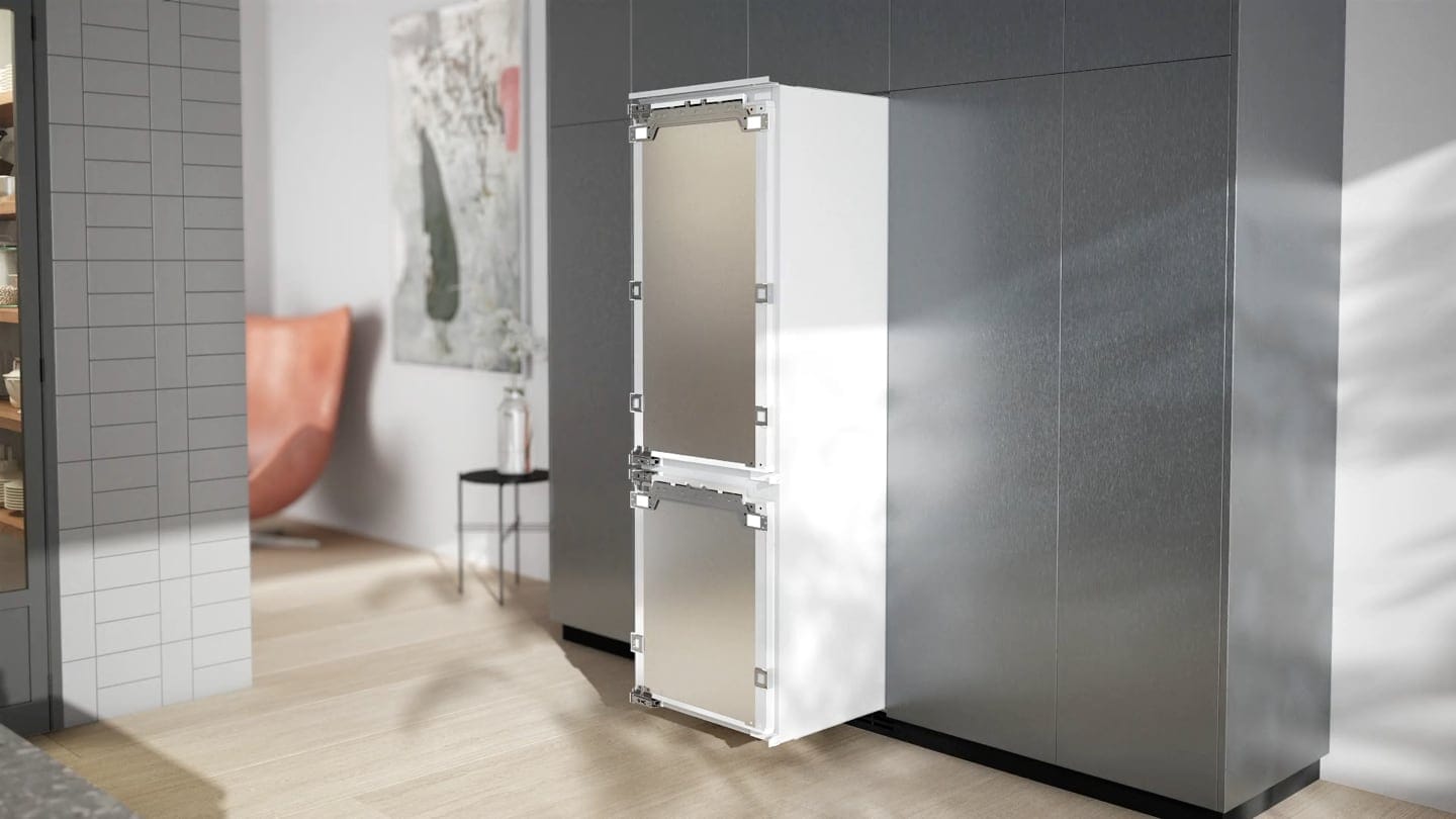 Integroitava – Jääkaappipakastin sijoittuu kalusteoven taakse keittiön sisustukseen sopivaksi. Valitse yhdistetty jääkaappipakastin tai erilliset yksiköt.
