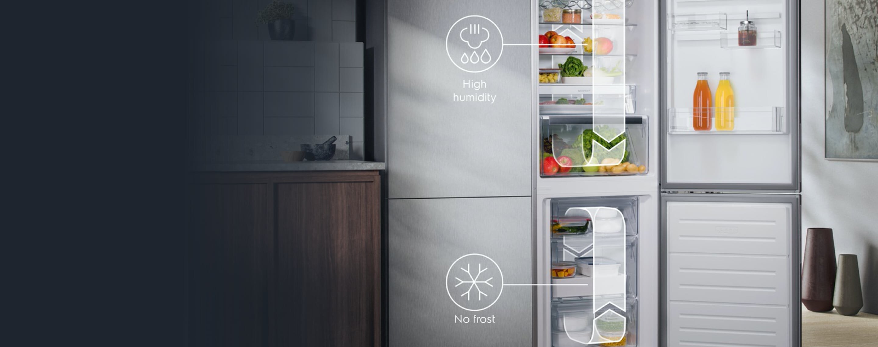 Älykäs TwinTech® No Frost -kaksoisjäähdytystekniikka säilyttää elintarvikkeiden kosteuden. Jääkaappi ja pakastin jäähdytetään toisistaan riippumatta järjestelmällä, joka on parempi kuin No Frost -vakiomalleissa. Pakastimeen ei myöskään muodostu huurretta. TwinTech® No Frostin ansiosta jääkaappi ylläpitää oikeaa kosteutta, mikä estää elintarvikkeiden kuivumisen.
