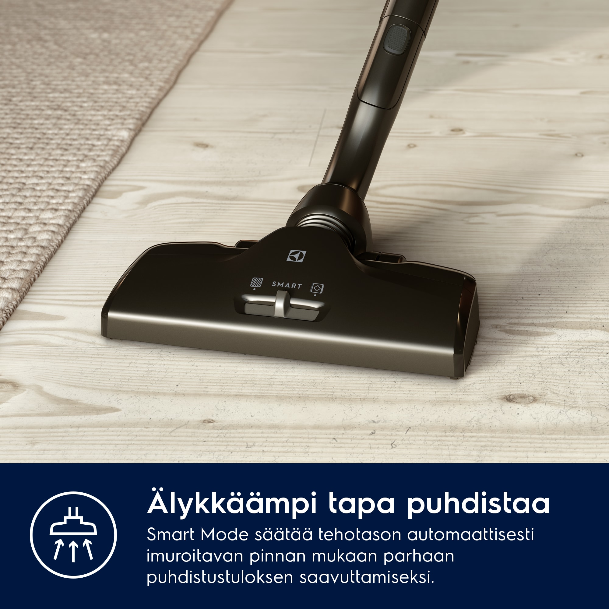 SmartMode-tekniikka. Automaattinen tehonsäätö lattian ja maton välillä