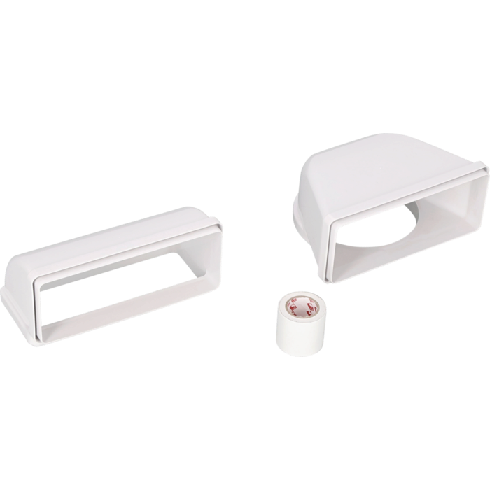 Asennusputkisarja induktiotasoihin integroidulla liesituulettimella. Huoneilmaan palauttavan asennussarjan avulla poistoilma puhalletaan sokkeliiin. Sitä voidaan käyttää myös johtamaan ilma muihin ilmanpoistolaitteistoihin.