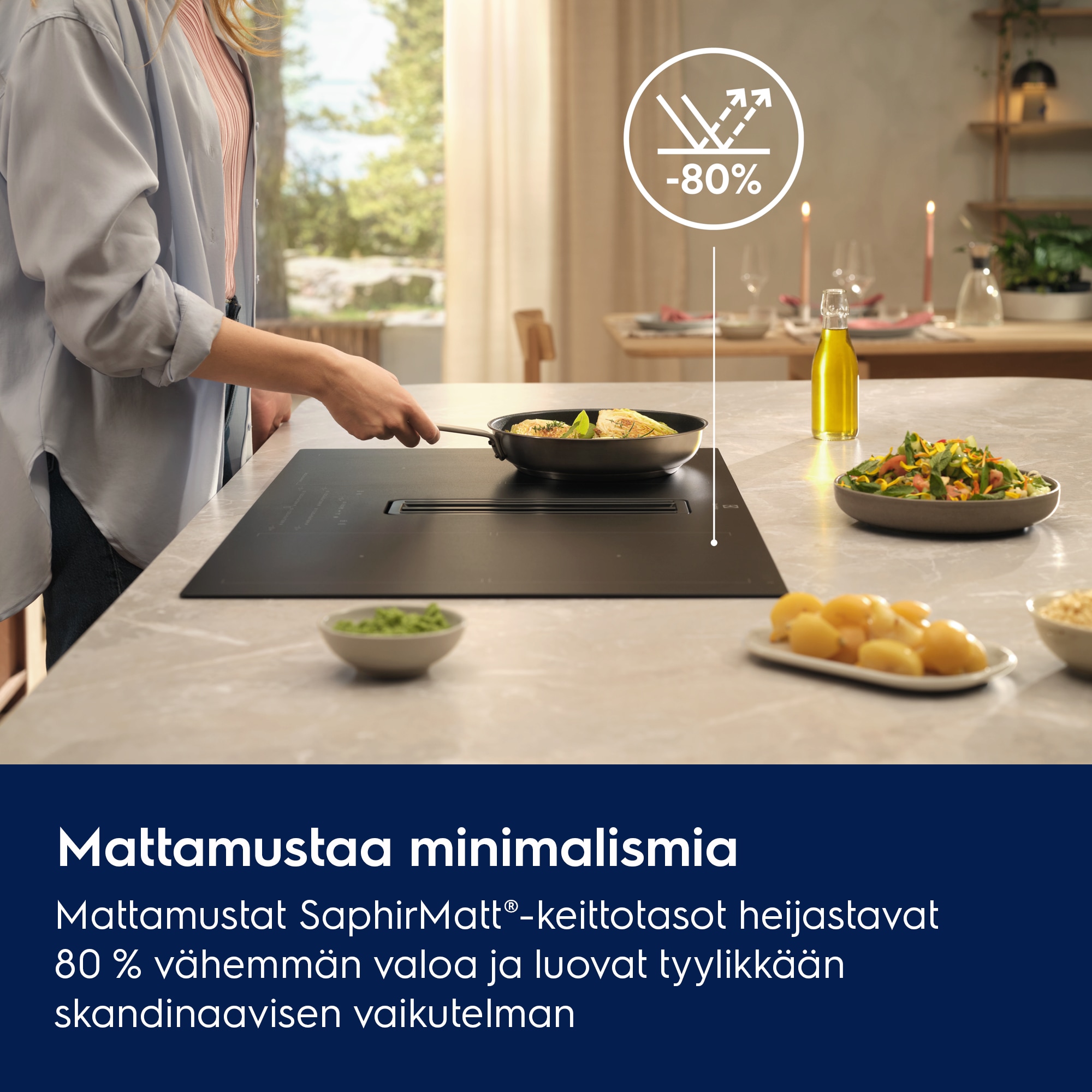 80 cm Induktiotaso liesituulettimella SaphirMatt® naarmunkestävämpi pinta