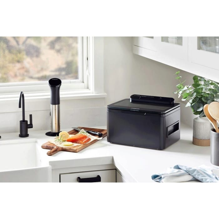 Tiivis vakuumipakkaus, infuusiot ja paljon muuta. Anova Precision™ Chamber Vacuum Sealer -vakuumipakkauslaite on toiminnaltaan samanlainen kuin ammattikeittiöissä tyypillisesti käytettävät vastaavat laitteet, mutta se on kooltaan huomattavasti pienempi ja intuitiivisten toimintojensa ansiosta käyttäjäystävällisempi. Esiohjelmoidutn asetukset mahdollistavat ammattimaisen tyhjiöpakkaamisen, myös nesteille. Lisäksi voit hyödyntää vakuumia nopeaan pikkelöintiin, öljyjen maustamiseen ja paljon muuhun vain yhdellä napin painalluksella.