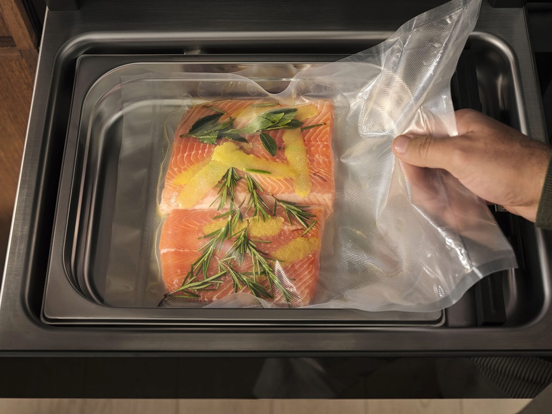 Säilytä ruokien raikkaus jopa 5 kertaa pidempään*. Vakuumipakkaamalla estät ruokia altistumisen ilmalle ja hapettumisen, minkä ansiosta maut, ravintoaineet ja mehukkuus säilyvät. Samalla pienennät ruokahävikin riskiä ja pidät ruoanlaiton täysin hallinnassasi. Helpompaa, herkullisempaa ja kestävämpää ruoanlaittoa varten.