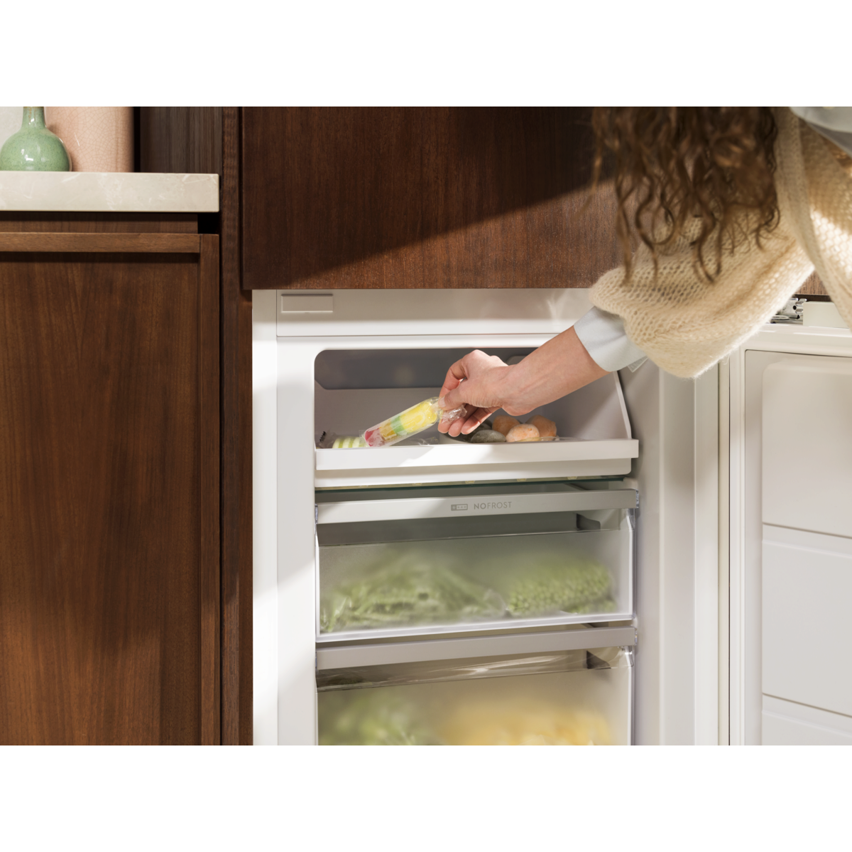 600 Low Frost AI CoolAssist -jääkaappipakastin mukautuu elämäntyyliisi ja säätää jäähdytystä päivittäisten rutiiniesi mukaan, olitpa sitten purkamassa ruokaostoksia tai lähdössä lomalle. Low Frost vähentää jään muodostumista ja helpottaa ylläpitoa.
