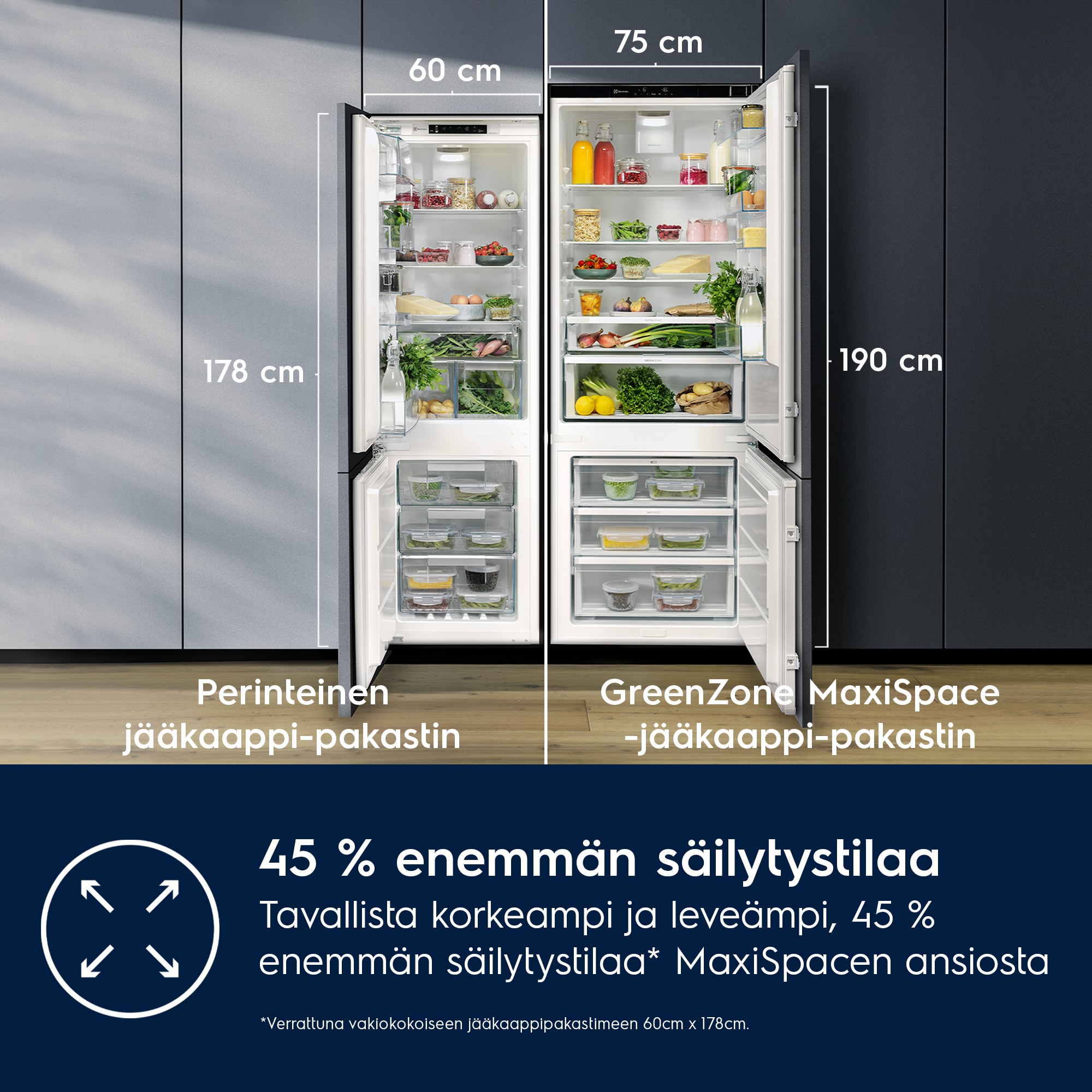 Kalusteisiin sijoitettava 700 GreenZone Jääkaappipakastin 188.4 cm