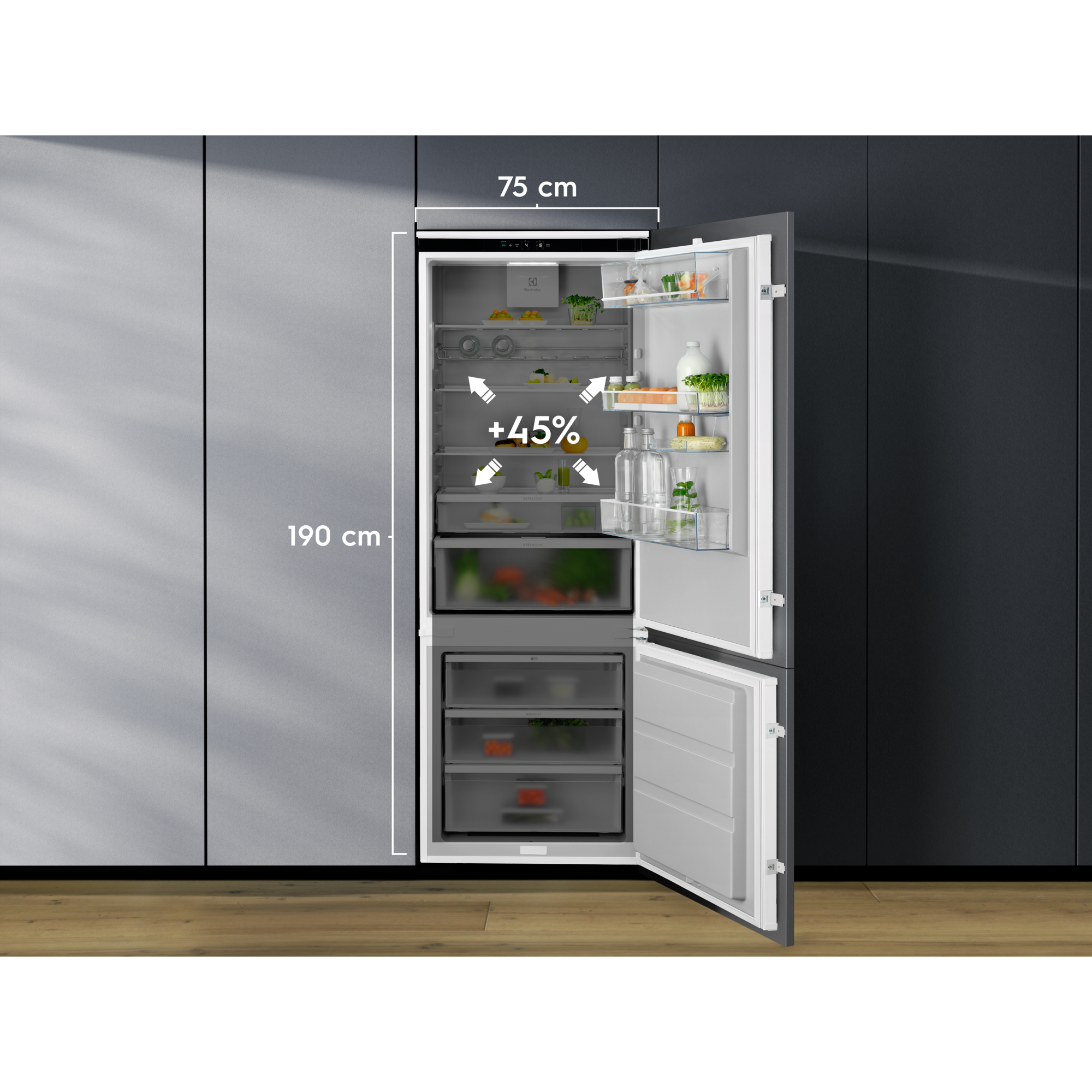 700 GreenZone -jääpakastinkaapissa on tiivistetty laatikko, jossa kosteustaso pidetään tasapainossa hallitsemalla ylimääräistä kosteutta, mikä puolestaan estää elintarvikkeiden pilaantumista. Näin suojaamalla hedelmät ja vihannekset sopivalla kosteudella säilytetään jopa 95% niiden vitamiineista.