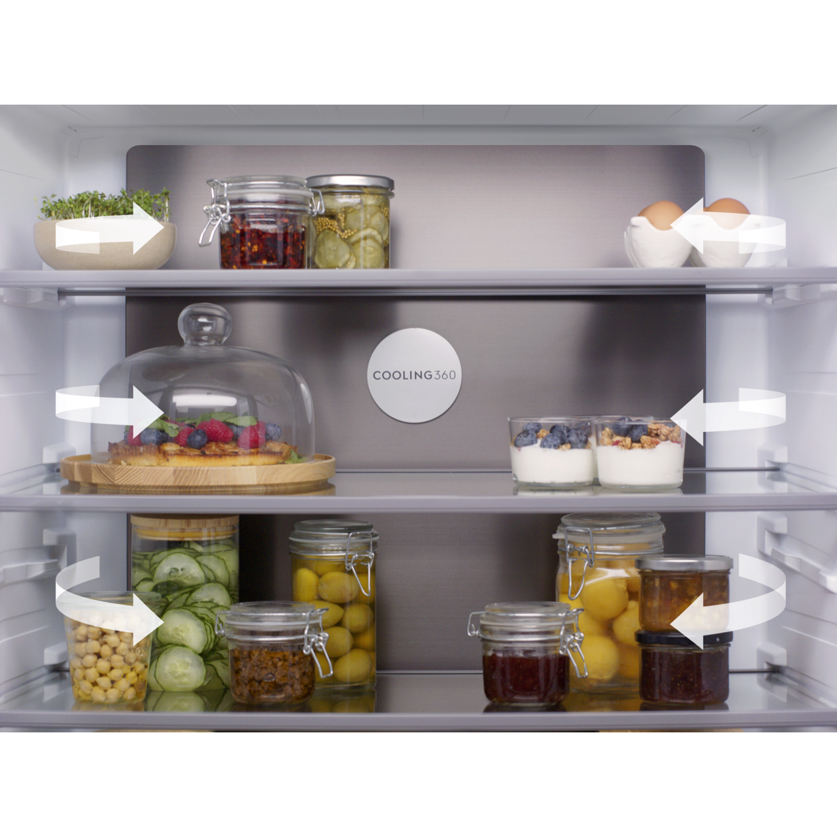 Slot In Perfect Fit 800 -mallin tyylikäs, integroitu ilme sopii saumattomasti kaikenlaisiin keittiöihin. Neliovinen malli tarjoaa myös monia erilaisia säilytysratkaisuja ruoille.