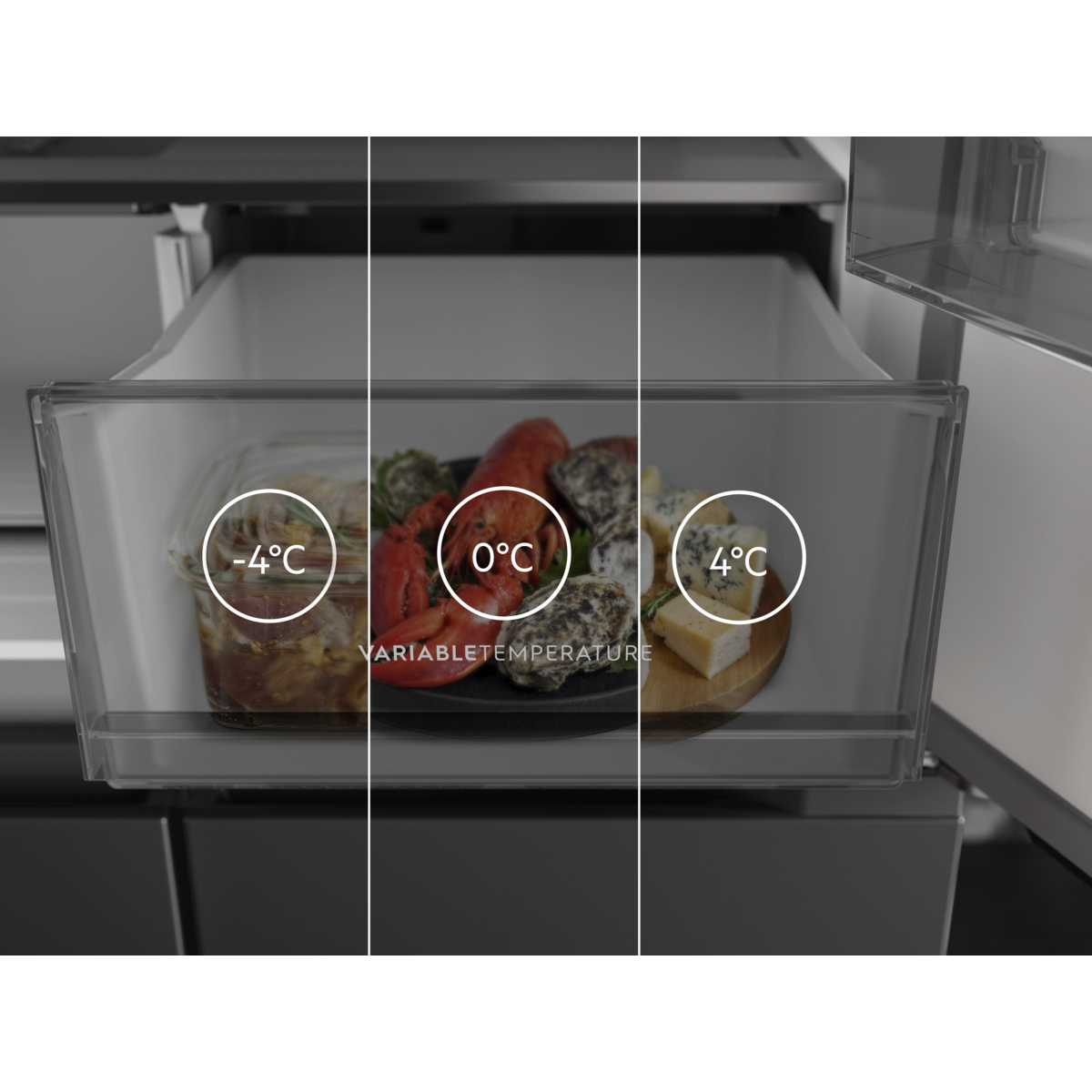 Tiivis, lämpötilaltaan säädettävä laatikko tuoreelle lihalle ja kalalle