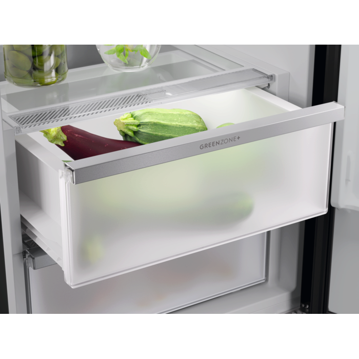 800 Cooling 360° -jääkaappipakastimessa on tyylikäs ruostumatonta terästä oleva sisäosa, joka varmistaa lämpötilan jakautumisen tasaisesti kaikille hyllyille. Suojaa ruokiasi jokaisessa kohdassa.
