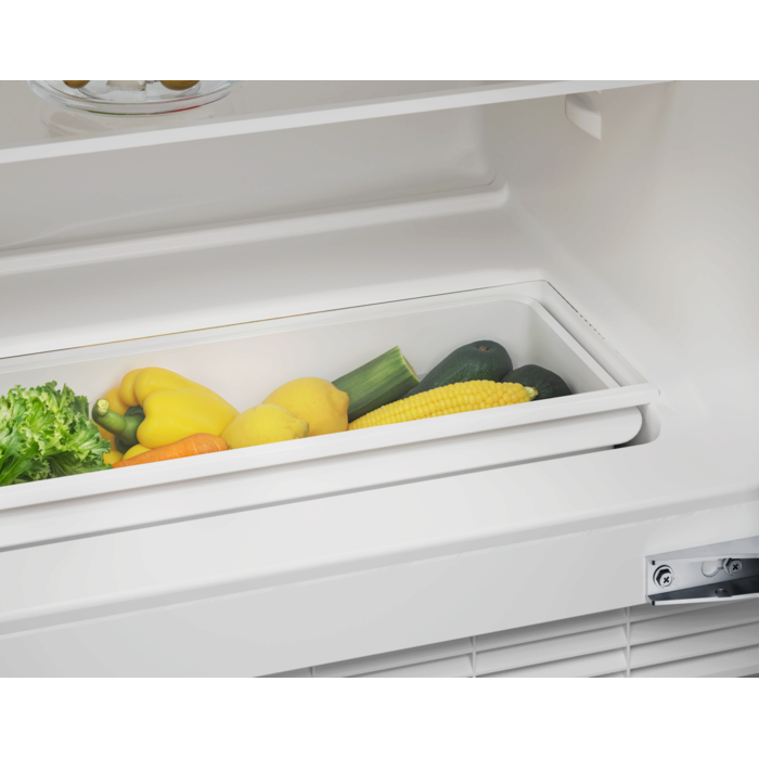 Jääkaappi hyödyntää käytettävissä olevan tilan tehokkaasti kätevillä ja fiksuilla säilytysratkaisuilla. Tasainen lämpötila ehkäisee ruoan pilaantumista.