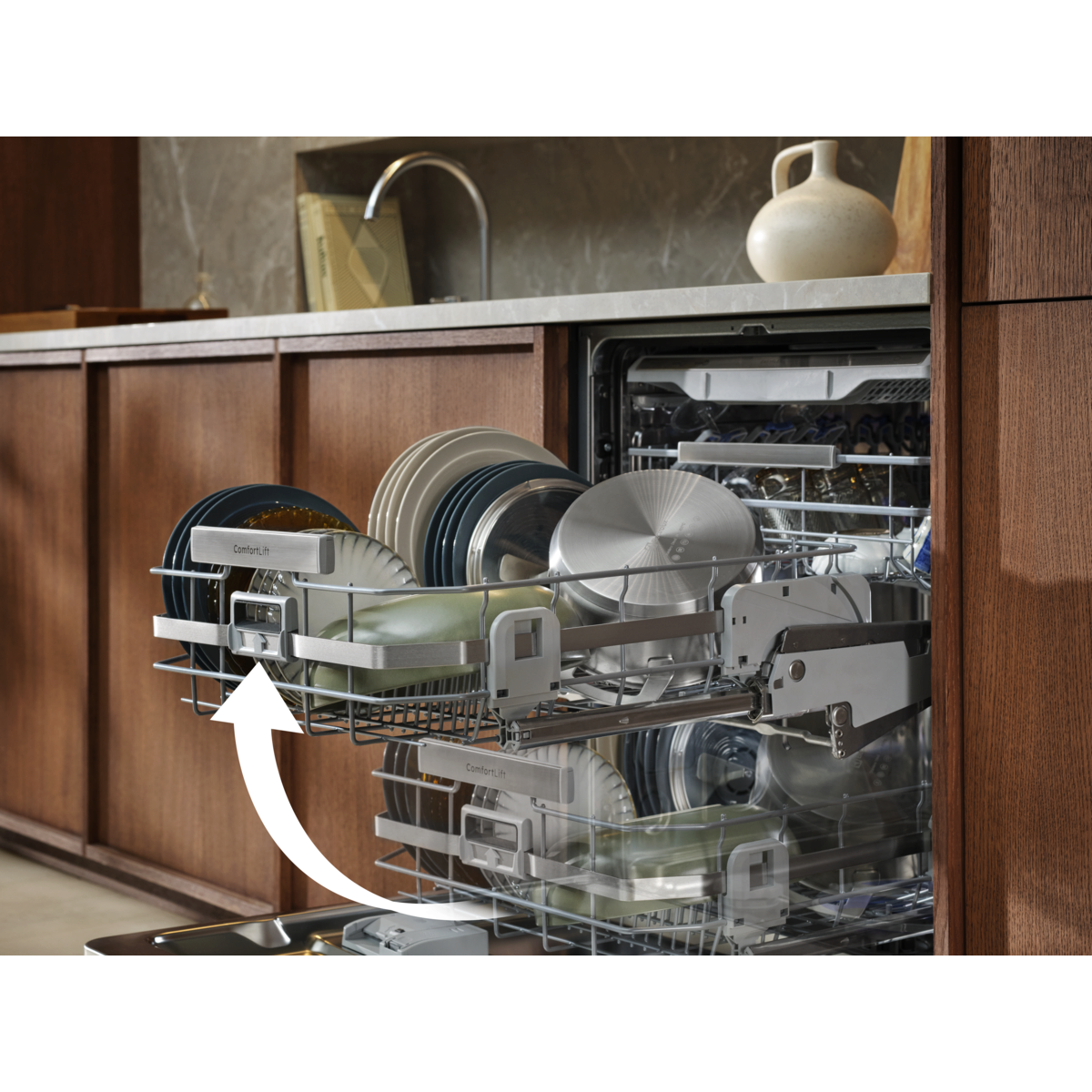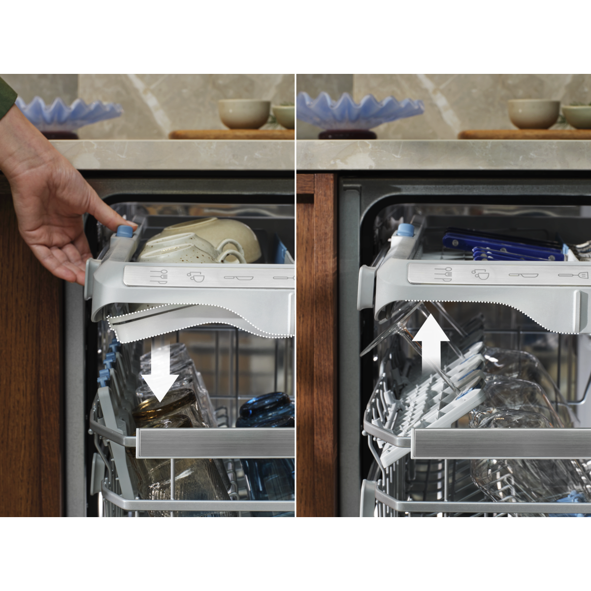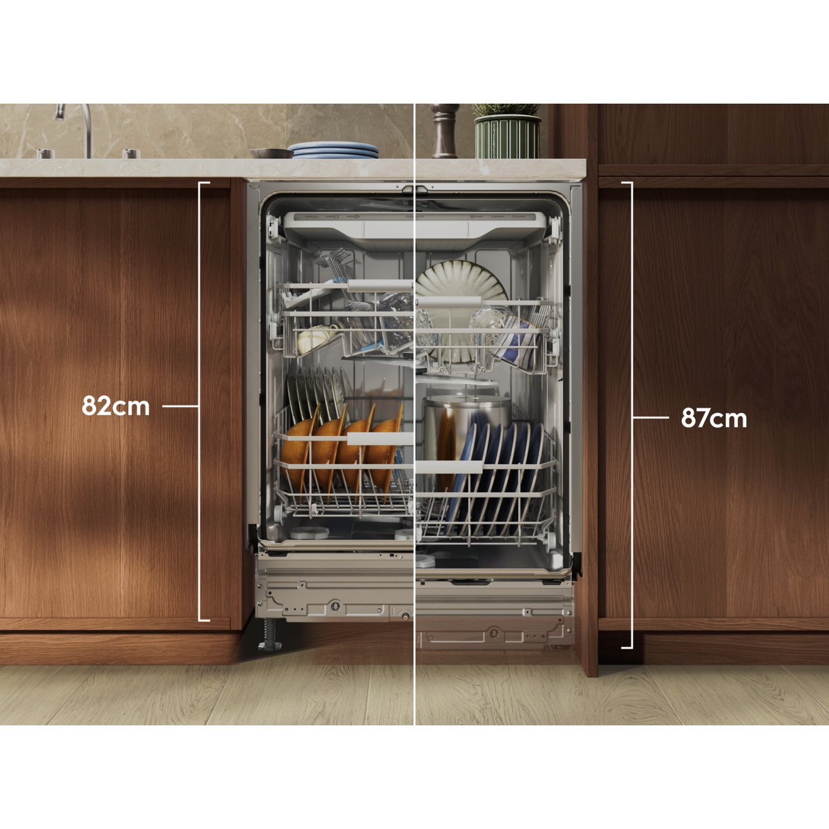 900 MaxiSpace on 5 cm korkeampi sisältä, mutta sopii standardikorkuisen työtason alle. Tilaviin koreihin mahtuvat helposti karahvit, jalalliset lasit ja jopa keittokulhot. Ruokailuvälinelaatikossa on tilaa pienille kupeille. Sitkeät ruokatahrat lähtevät minimaalisella vedenkulutuksella.