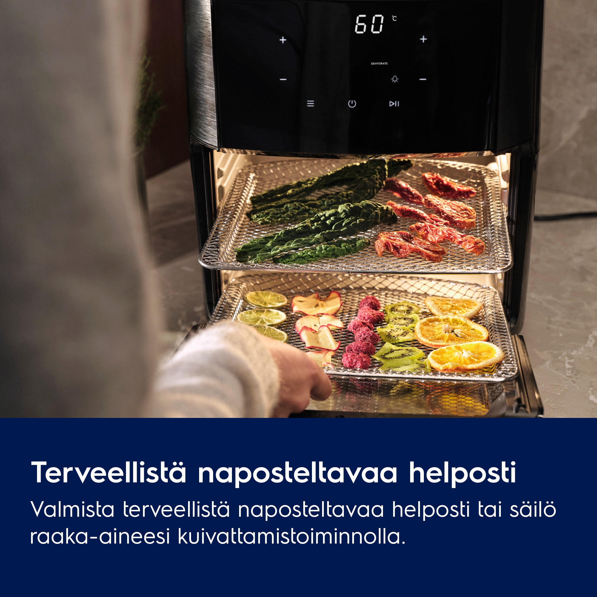 Valmista terveellisiä välipaloja kuivaustoiminnolla