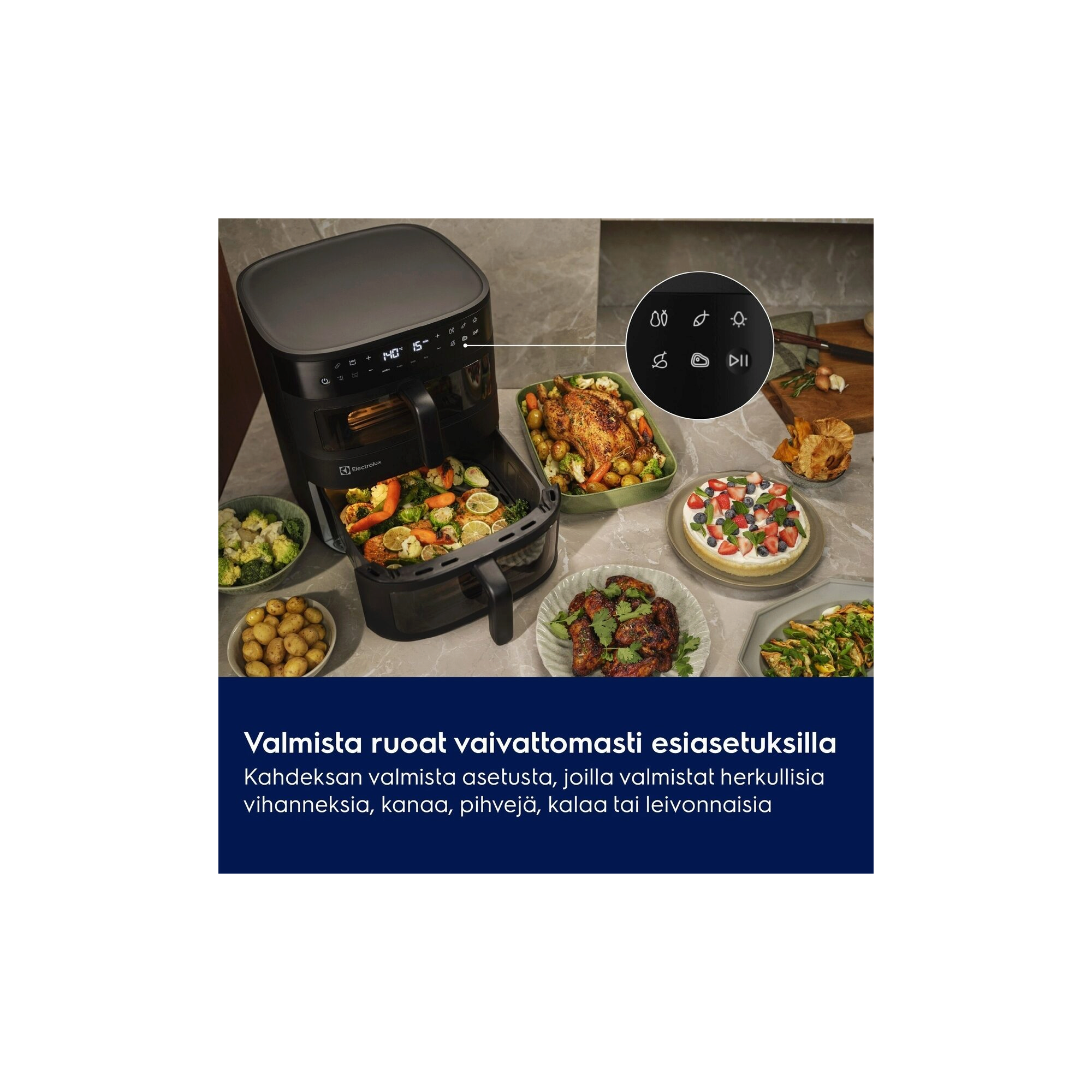 Monipuoliset esiasetukset tekevät ruoanvalmistuksesta vaivatonta