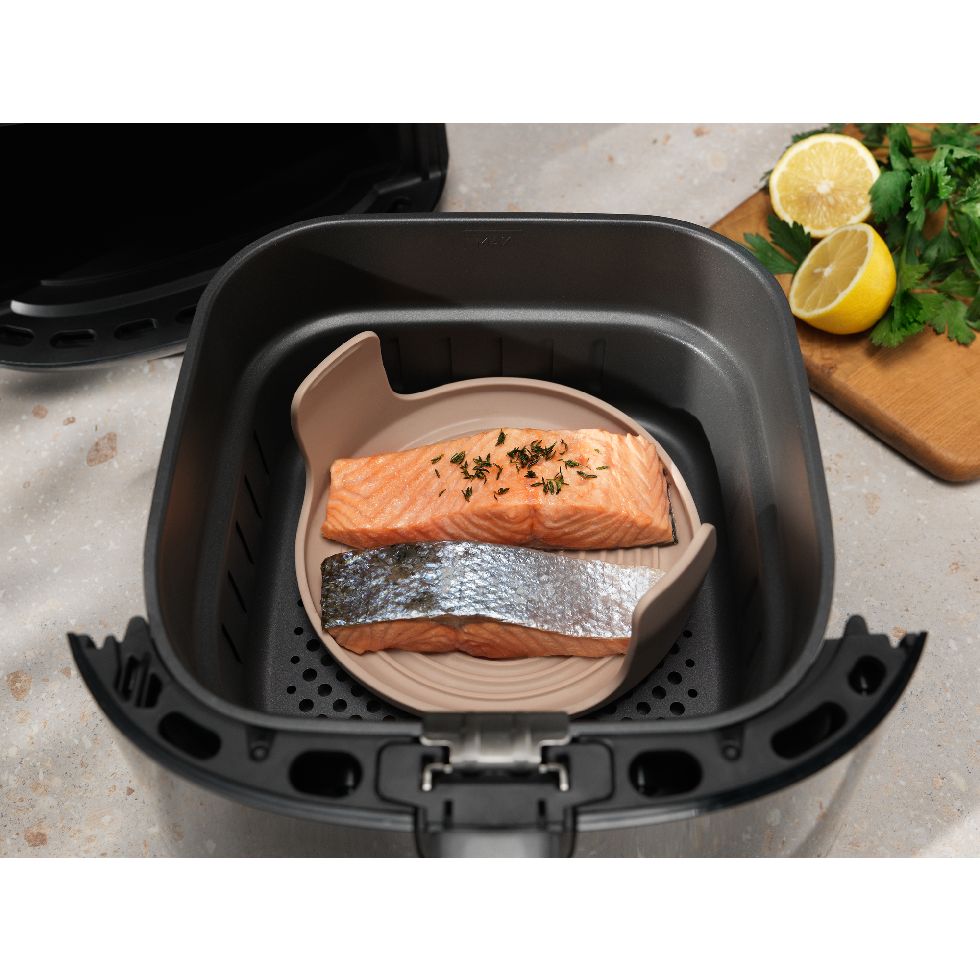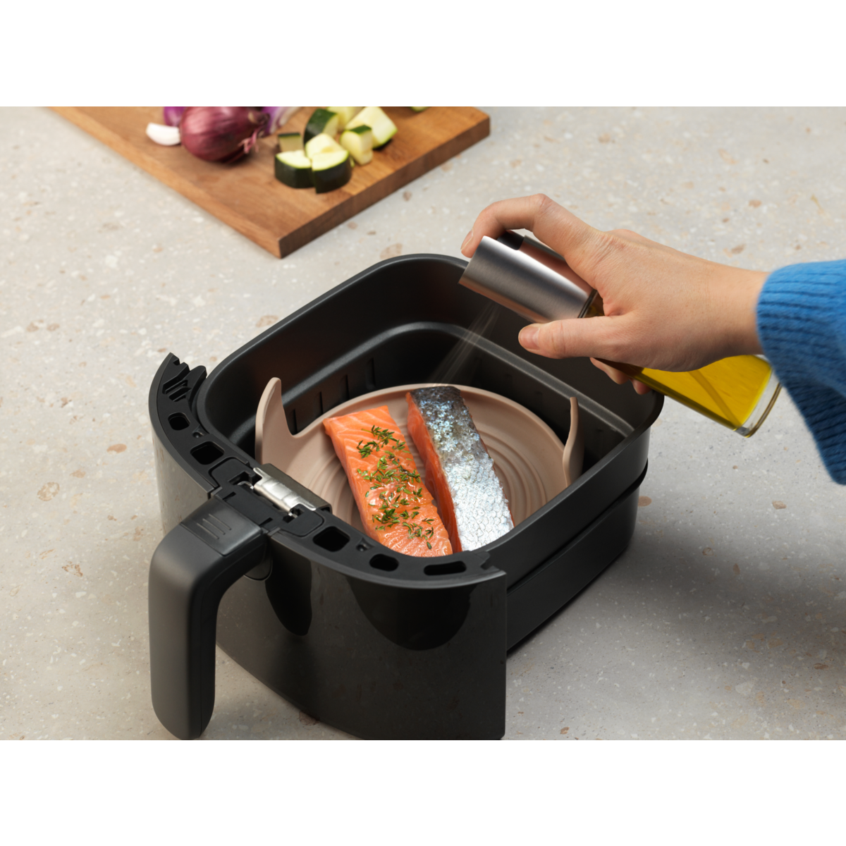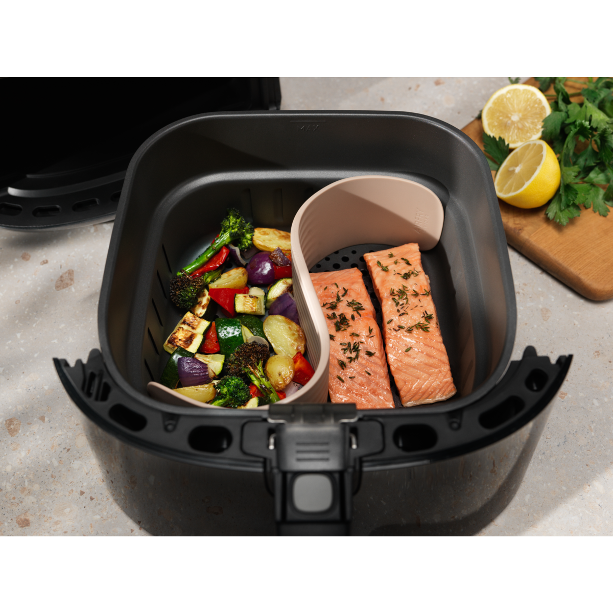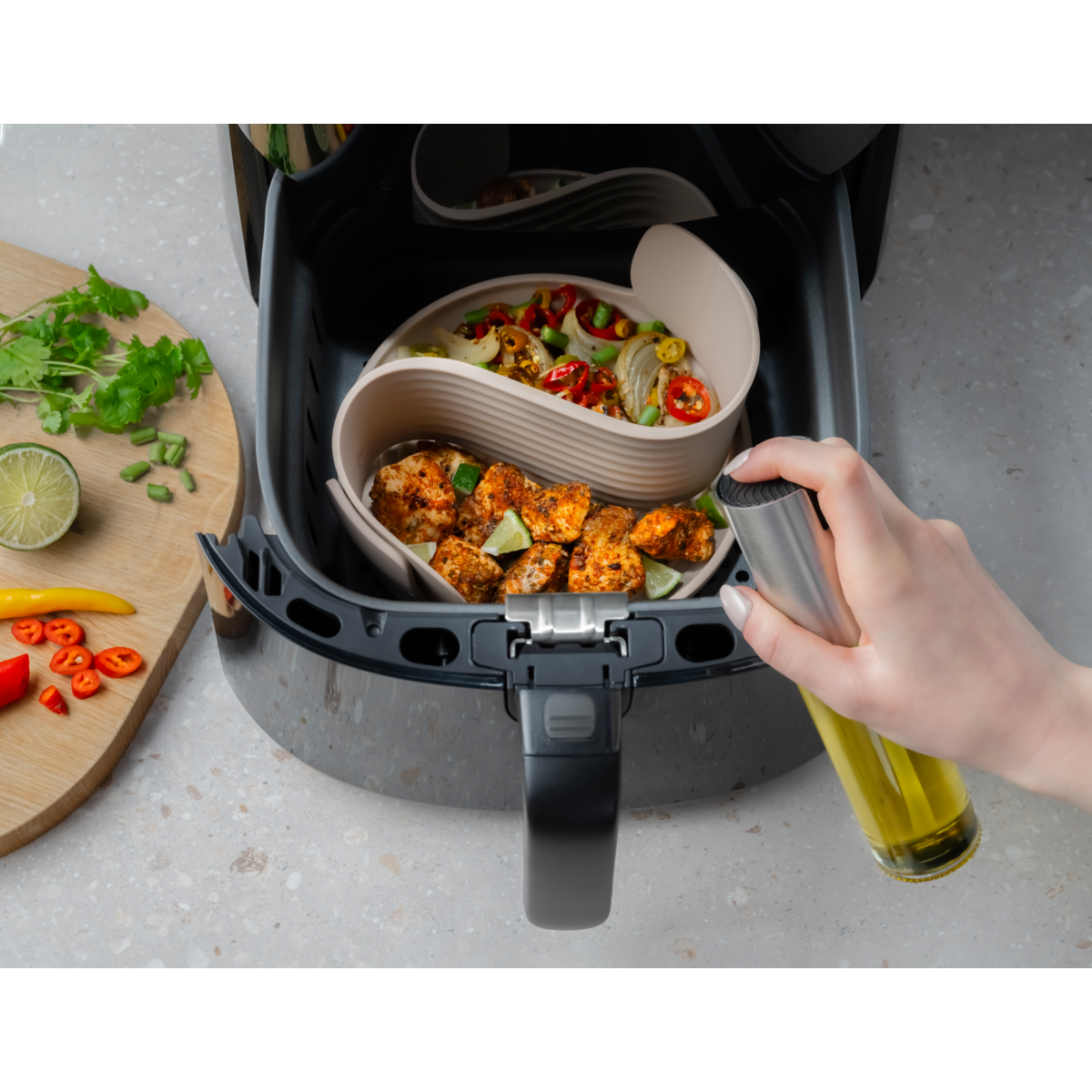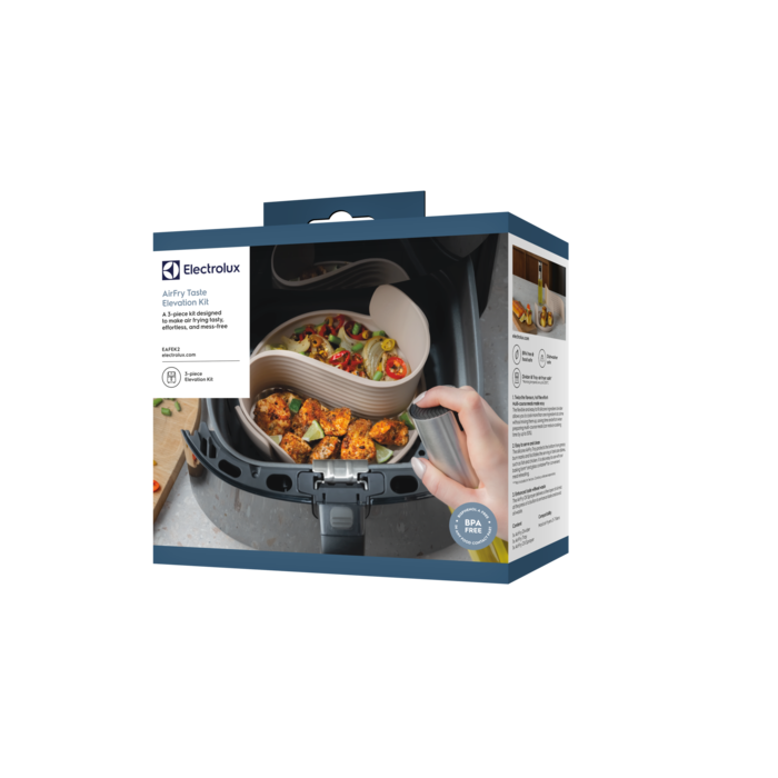 3-osainen sarja, joka on suunniteltu tekemään air frying -kypsennyksestä maukasta, vaivatonta ja sotkutonta.