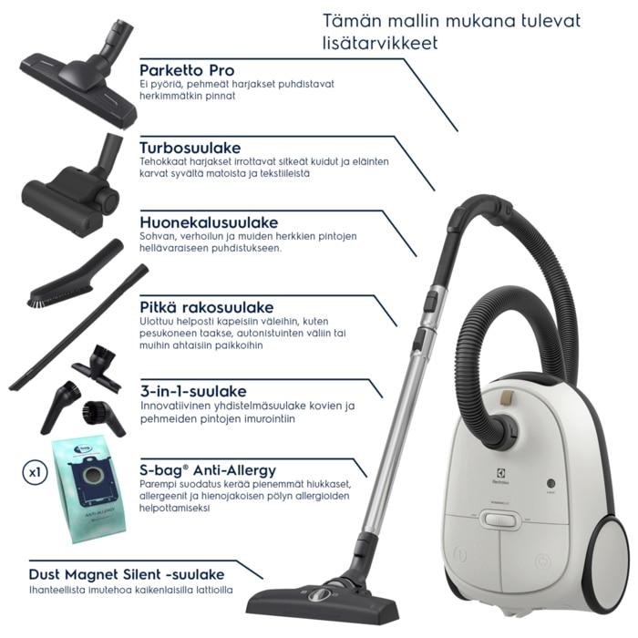 Electrolux tarjoaa 10 vuoden takuun pölynimurin moottorille. Rekisteröi uusi pölynimurisi hyödyntääksesi takuun. Lue lisää täältä