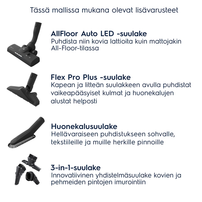 Vaivaton puhdistus AllFloor Auto LED suulakkeella