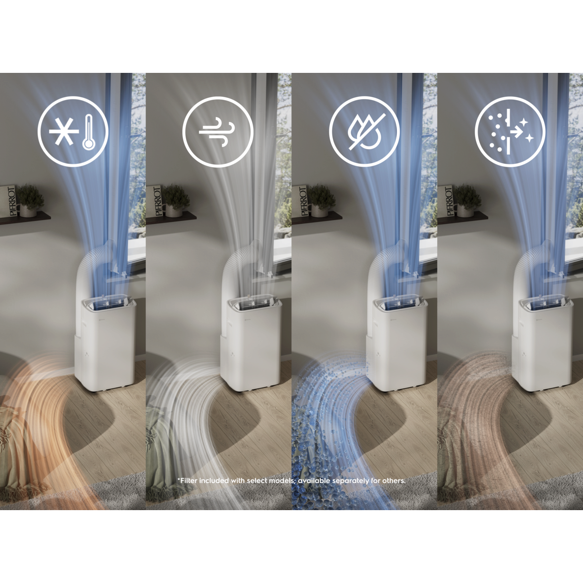 Pidä kotisi miellyttävän viileänä siirrettävän, monitoimisen 700-ilmastointilaitteen avulla. All-in-one-laite viilentää, poistaa kosteutta, tuulettaa ja puhdistaa ilman. Uusi invertteriteknologia takaa aiempaa paremman suorituskyvyn ja hiljaisemman äänitason.