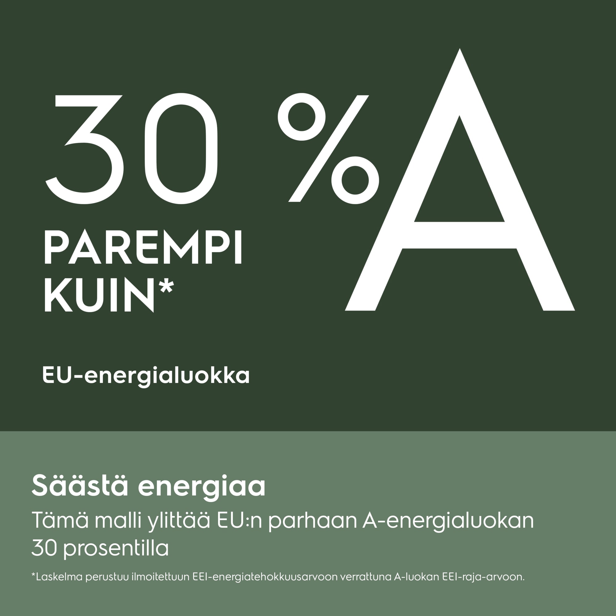 **Sisäisen testin mukaan, jossa verrattiin 40 °C:n puuvillaohjelman ja 49 minuuttia kestävän 30 °C:n UltraQuick-ohjelman energiankulutusta. 2. *Sisäisen testin mukaan, jossa verrattiin 40 C°:n puuvillaohjelman ja 49 minuuttia kestävän 30 C°:n UltraQuick-ohjelman energiankulutusta.