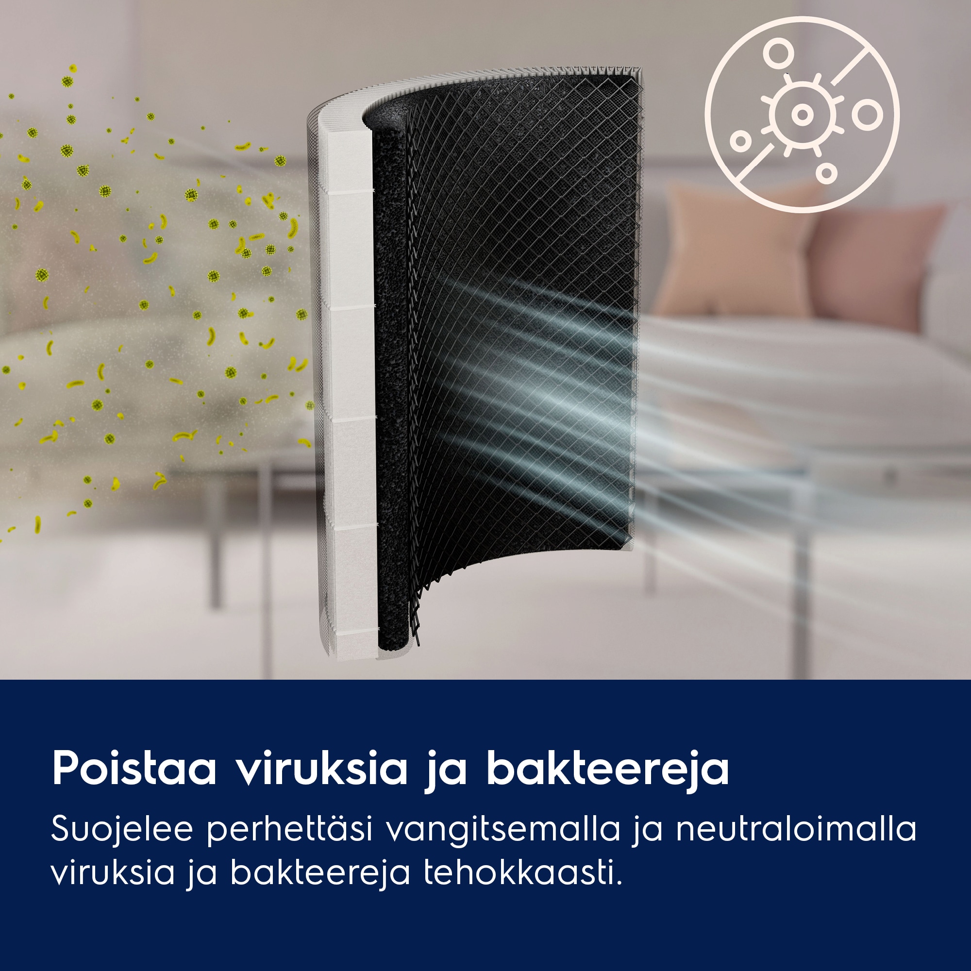 Kerää ja neutraloi viruksia ja bakteereja tehokkaasti