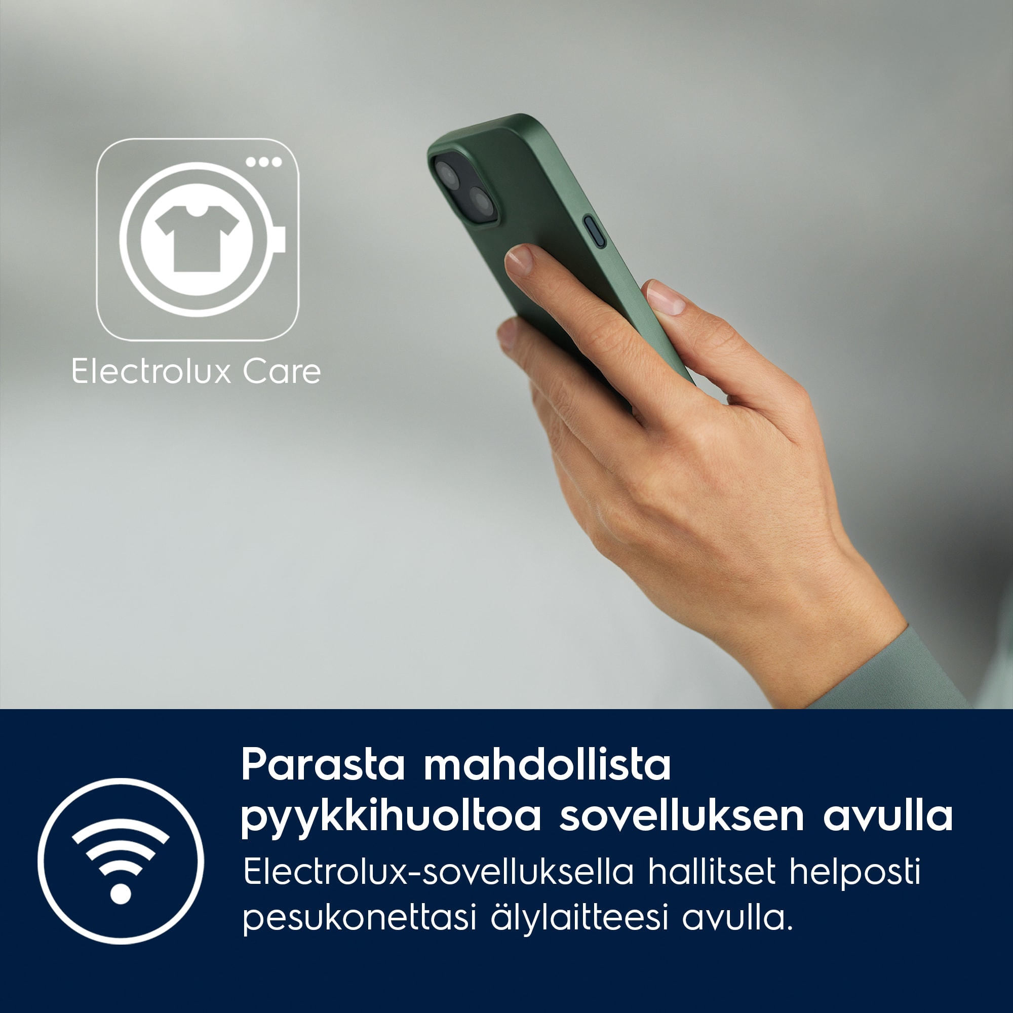 MyElectrolux-sovelluksella voit hallita pyykinpesukonettasi ja kuivausrumpuasi etänä älypuhelimestasi käsin. Care Advisor -toiminto antaa asiantuntevia ohjeita parhaan pesutuloksen saavuttamiseksi. MyFavourites-kohtaan voit puolestaan tallentaa asetukset pyykeille, joita peset useimmin.