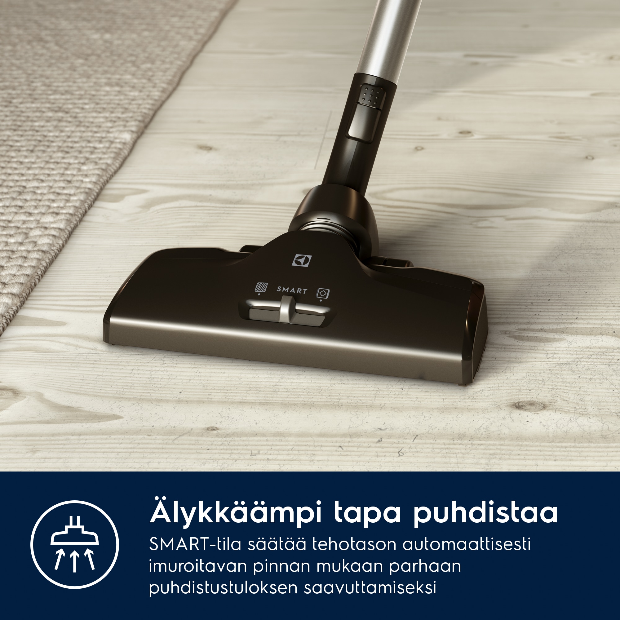 SmartMode-tekniikka. Automaattinen tehonsäätö lattian ja maton välillä