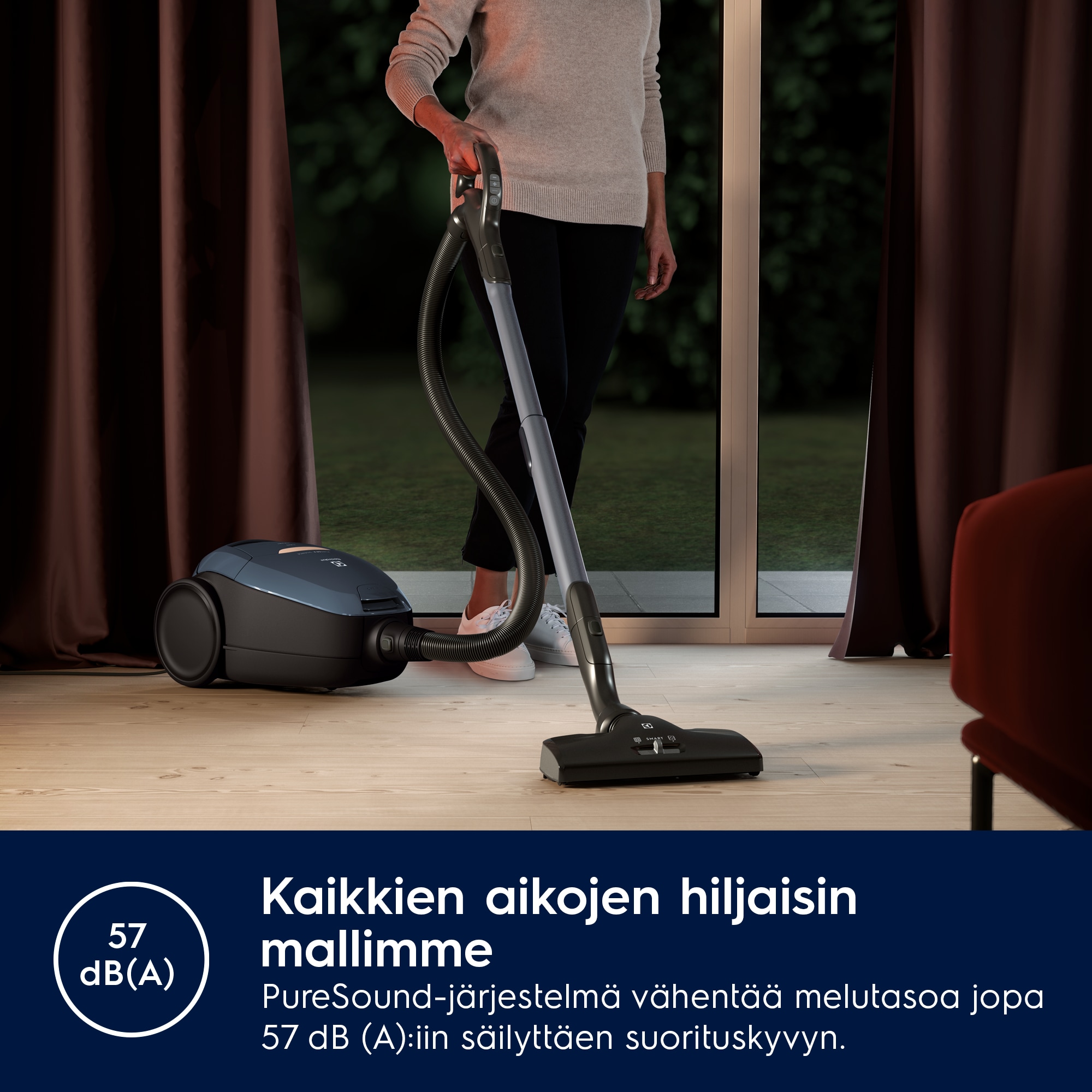 Suomen hiljaisin* pölynimuri. Äänitaso vain 57 dB(A).