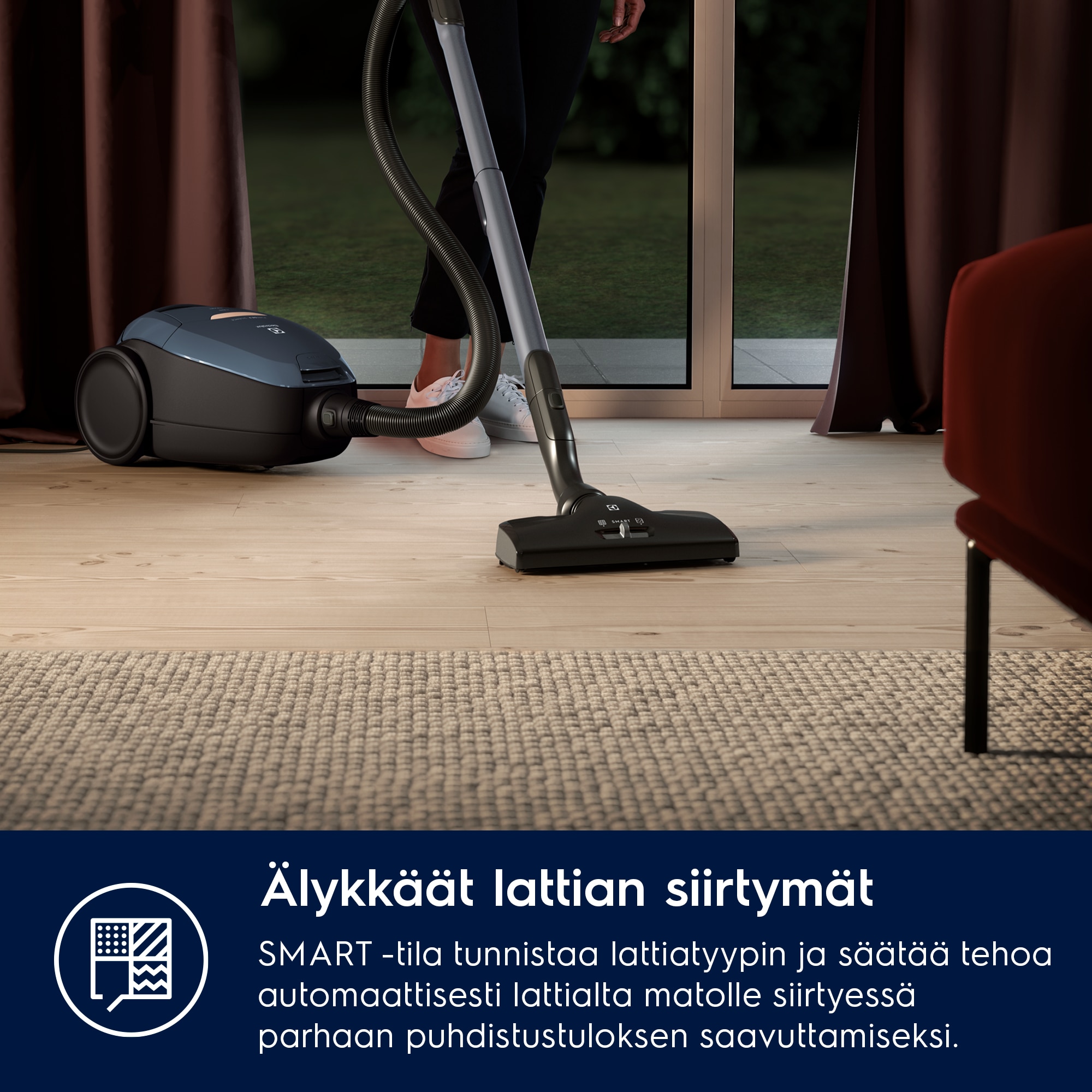 SmartMode-tekniikka. Automaattinen tehonsäätö lattian ja maton välillä