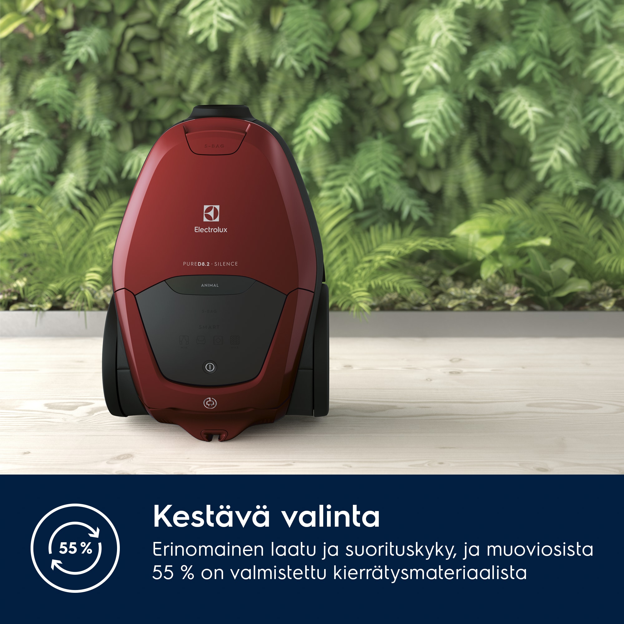 55% kierrätysmateriaalia. 100% kestävä