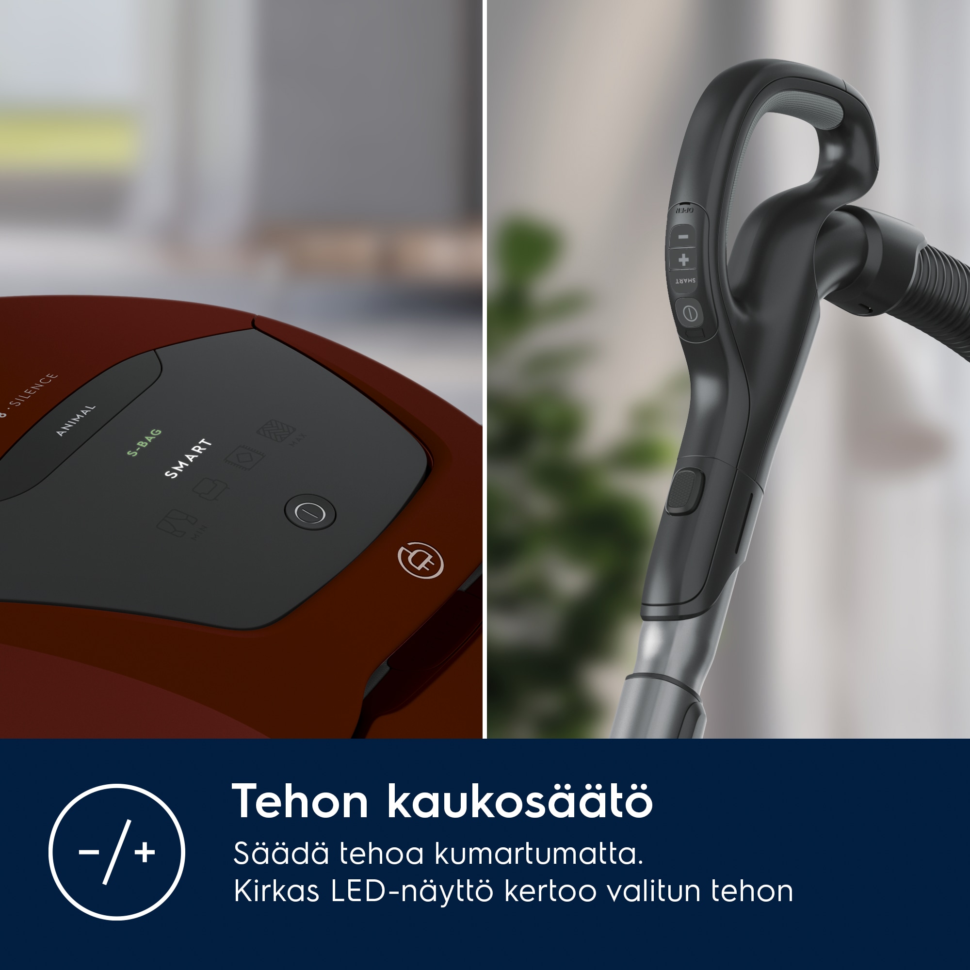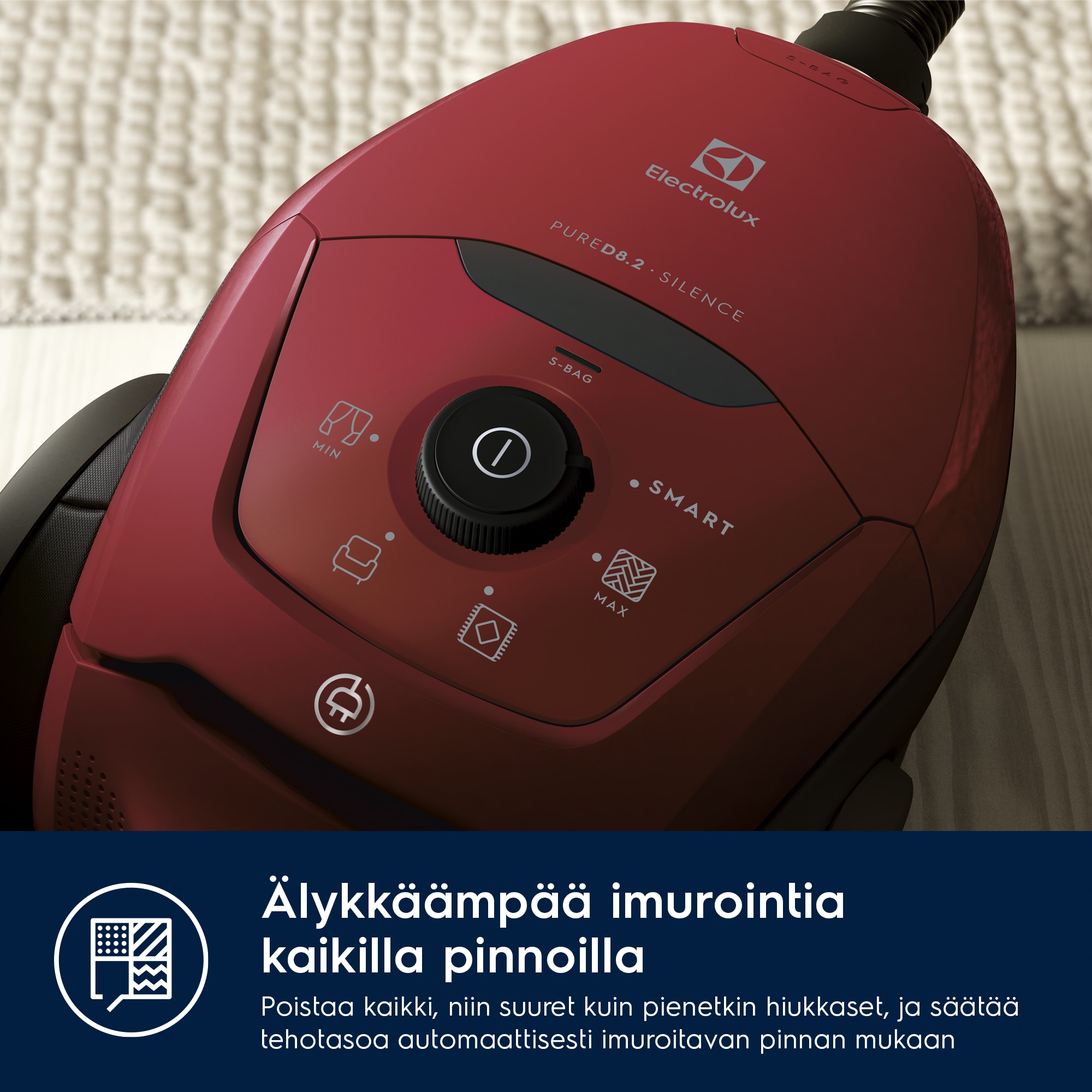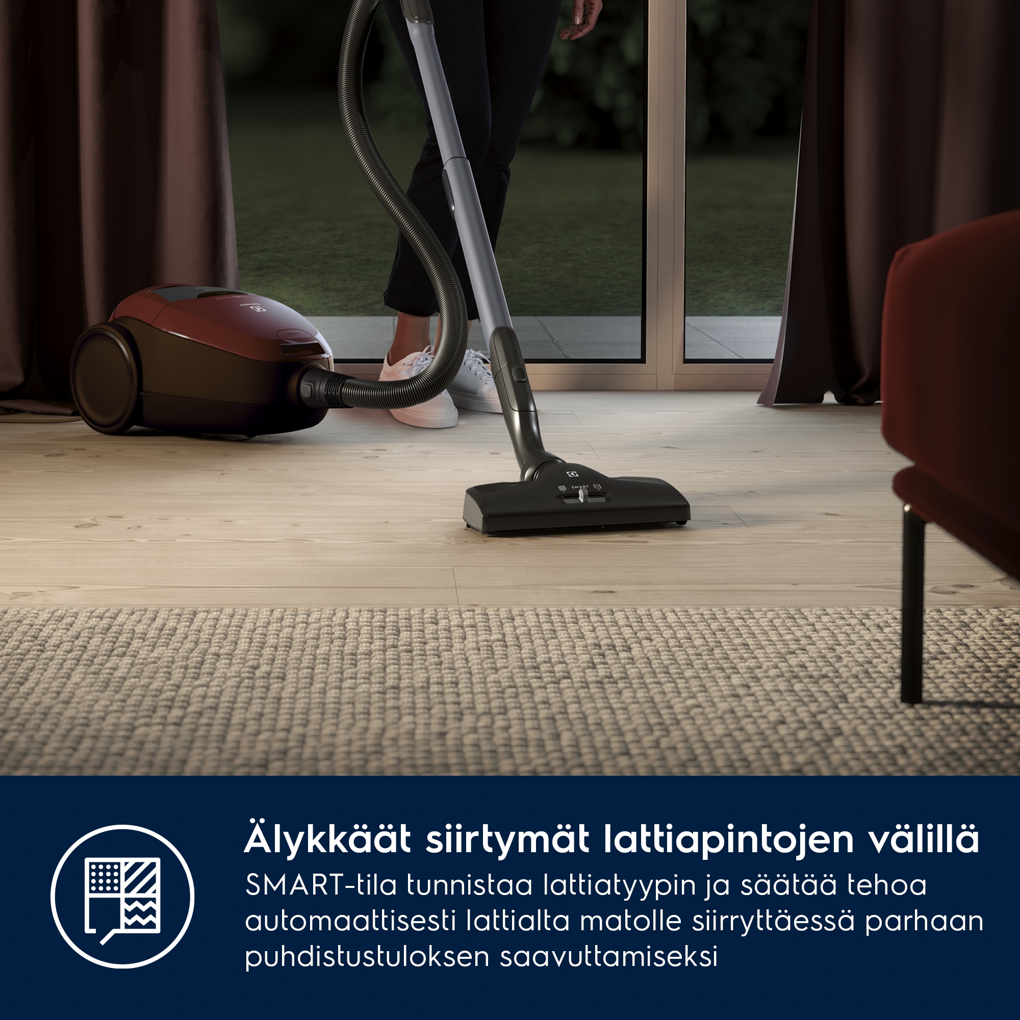 SmartMode-tekniikka. Automaattinen tehonsäätö lattian ja maton välillä
