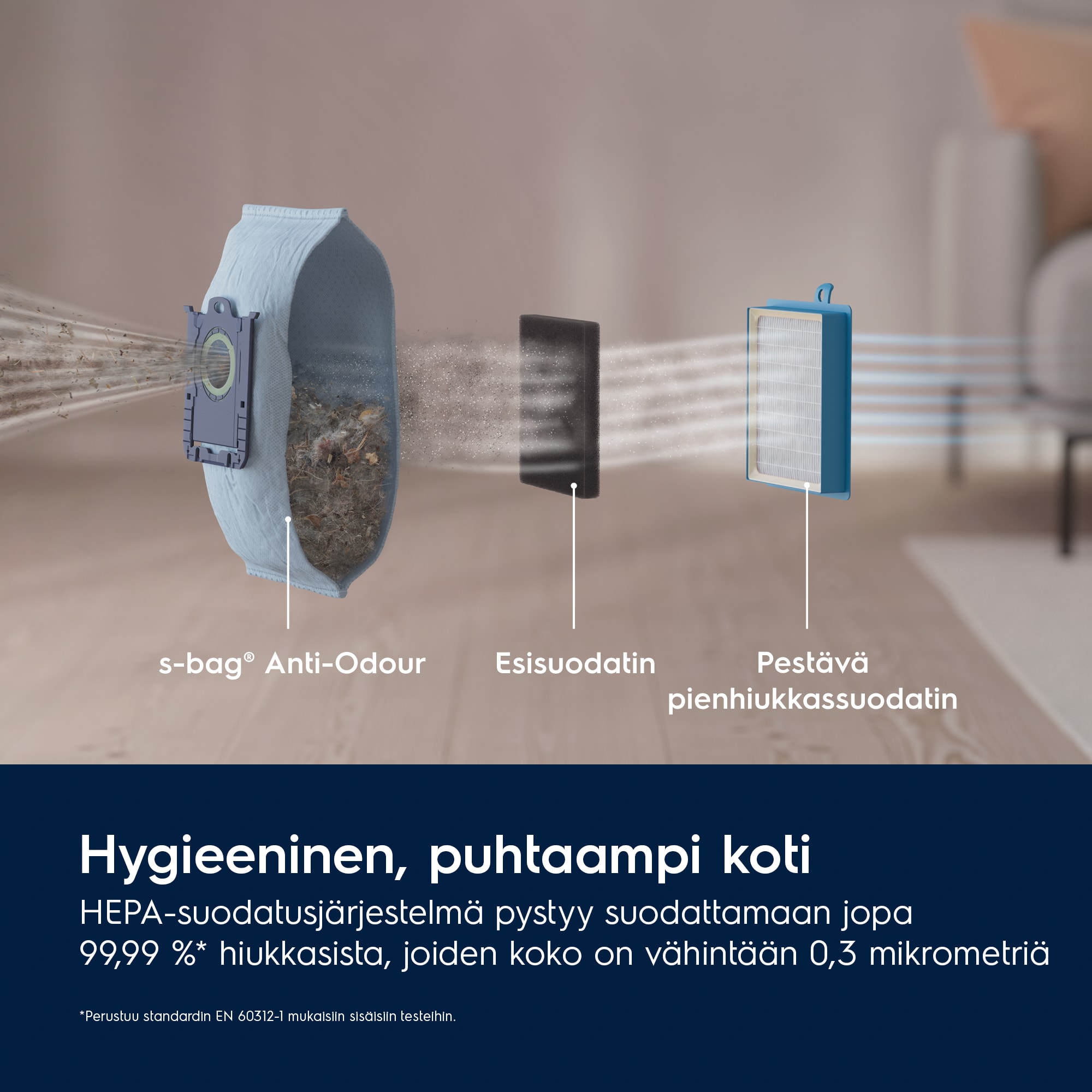 Tämä pölynimuri on Allergia-, Iho- ja Astmaliiton hyväksymä.