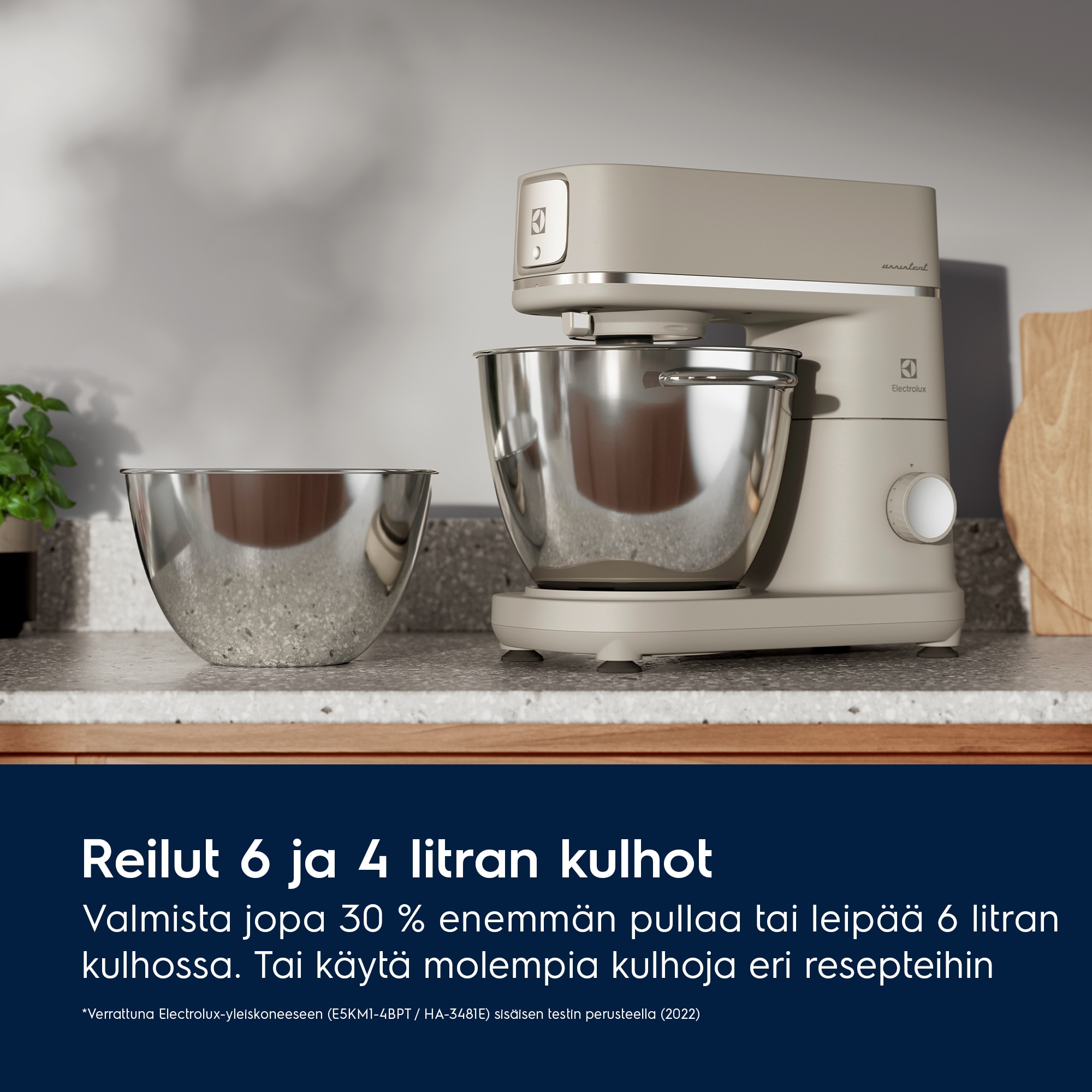 *Verrattuna Electrolux-monitoimikoneeseen (E5KM1-4BPT/HA-3481E) sisäisen testin mukaan (2022)