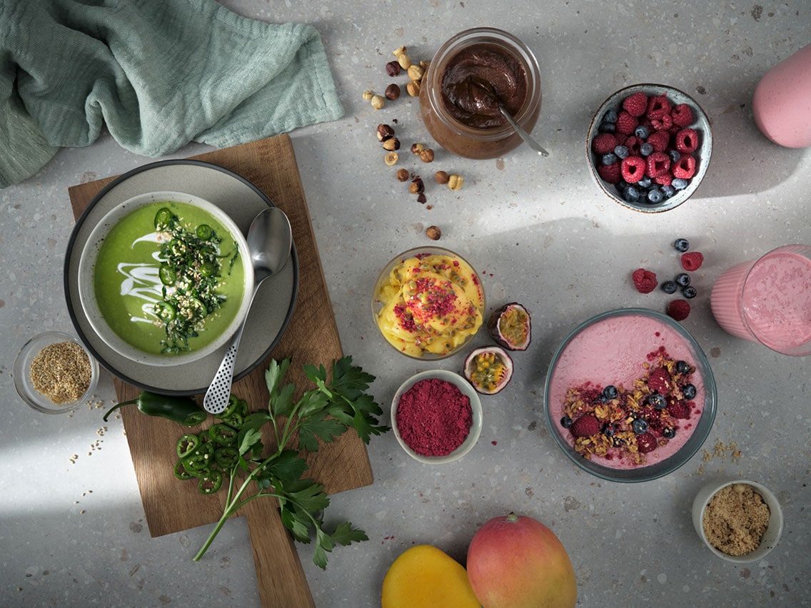 Olet varmasti kuullut, että tehosekoitin tai blenderi on erinomainen laite smoothien tai keittojen valmistamiseen – eli ruokien, joissa on paljon nesteitä. Mutta tehosekoitin on ruoanlaiton monipuolinen apuväline, jolla murskaat myös pähkinöitä ja jäitä tai valmistat herkullisia soseita. Tehosekoittimissa on paljon erilaisia toimintoja, joten valitse huolella sinulle sopiva malli.