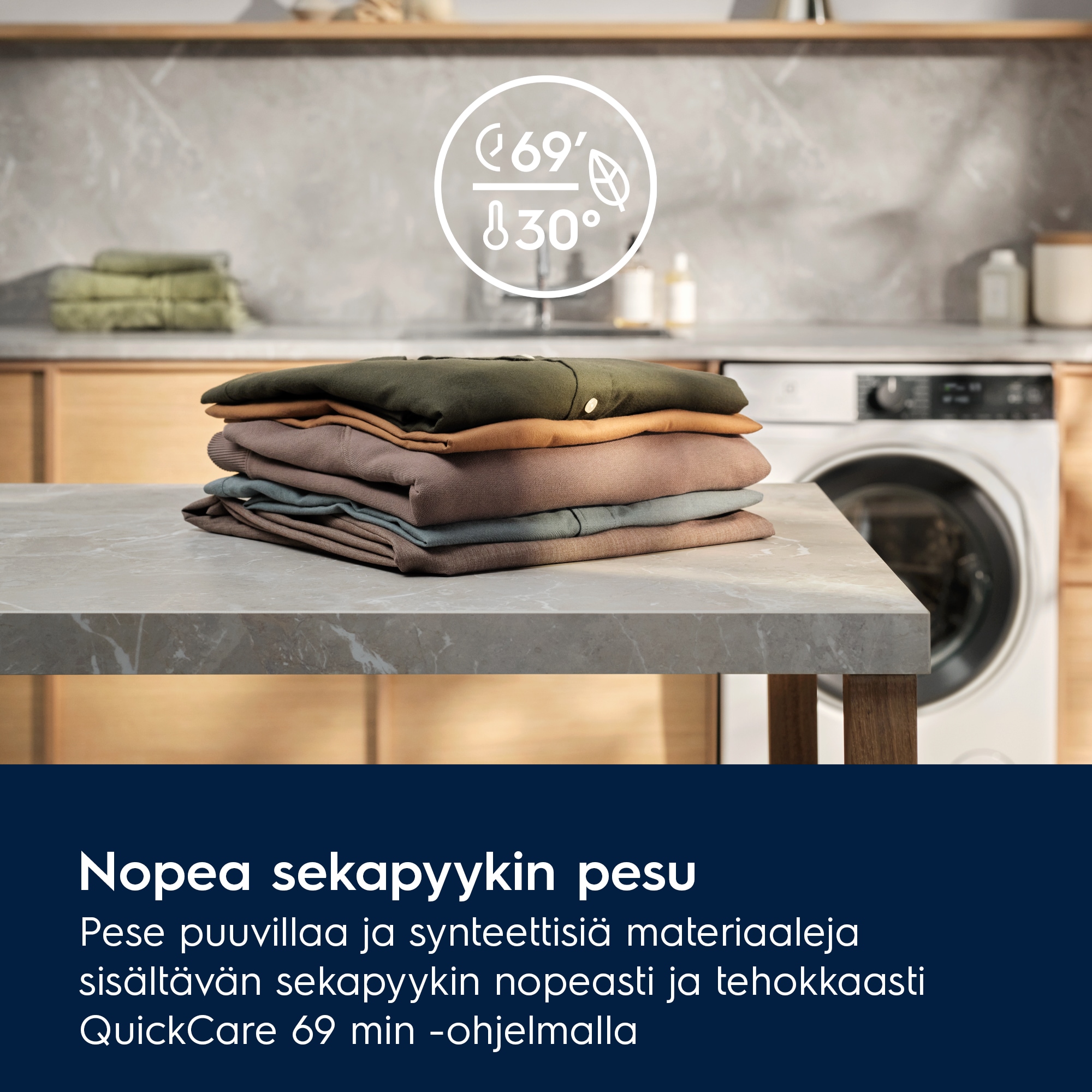 QuickCare 69min nopea ja tehokas pesuohjelma sekapyykille