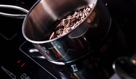 Sulata suklaa kattilassa induktiokeittotasolla alhaisella lämmöllä, tai kulhossa, joka on asetettu kiehuvaan veteen. Lisää ½ tl vaniljauutetta ja kookosnektaria. Anna suklaan jäähtyä kun valmistat seuraavaa askelta.