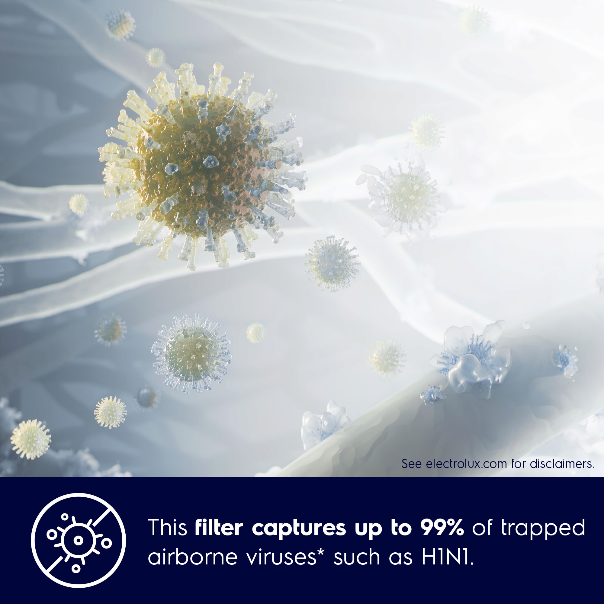 *Testattu influenssa A -viruksella A/PR8/34 H1N1 vuonna 2021 suoritetussa ulkoisessa, standardin ISO 18184: 2019 (E) mukaisessa testissä.