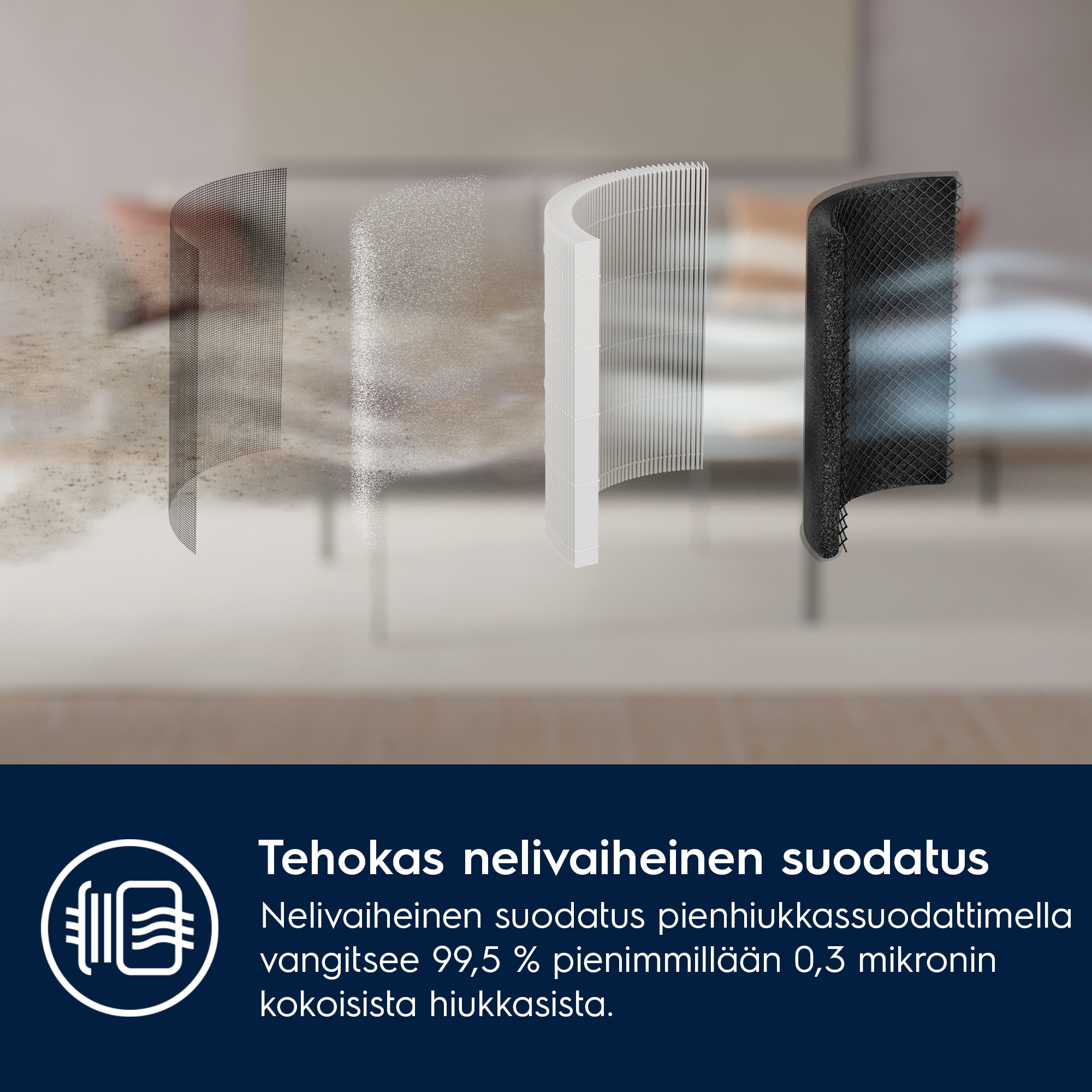 Nauti puhtaammasta ilmasta huippuluokan nelivaiheisella suodatusjärjestelmällä