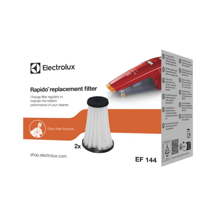 Pestävä suodatin, joka suojaa moottoria pölyhiukkasilta. Sopii Electrolux-akkuimureille: Rapido ZB5003-5112, ZB6106-6118; ErgoRapido ZB3001-3006 ja ErgoRapido Plus ZB3010-3020S. Huom. suodattimet sopivat vain maaliskuun 2014 jälkeen myytyihin edellä mainittuihin malleihin. Sisältää 2 kpl suodattimia