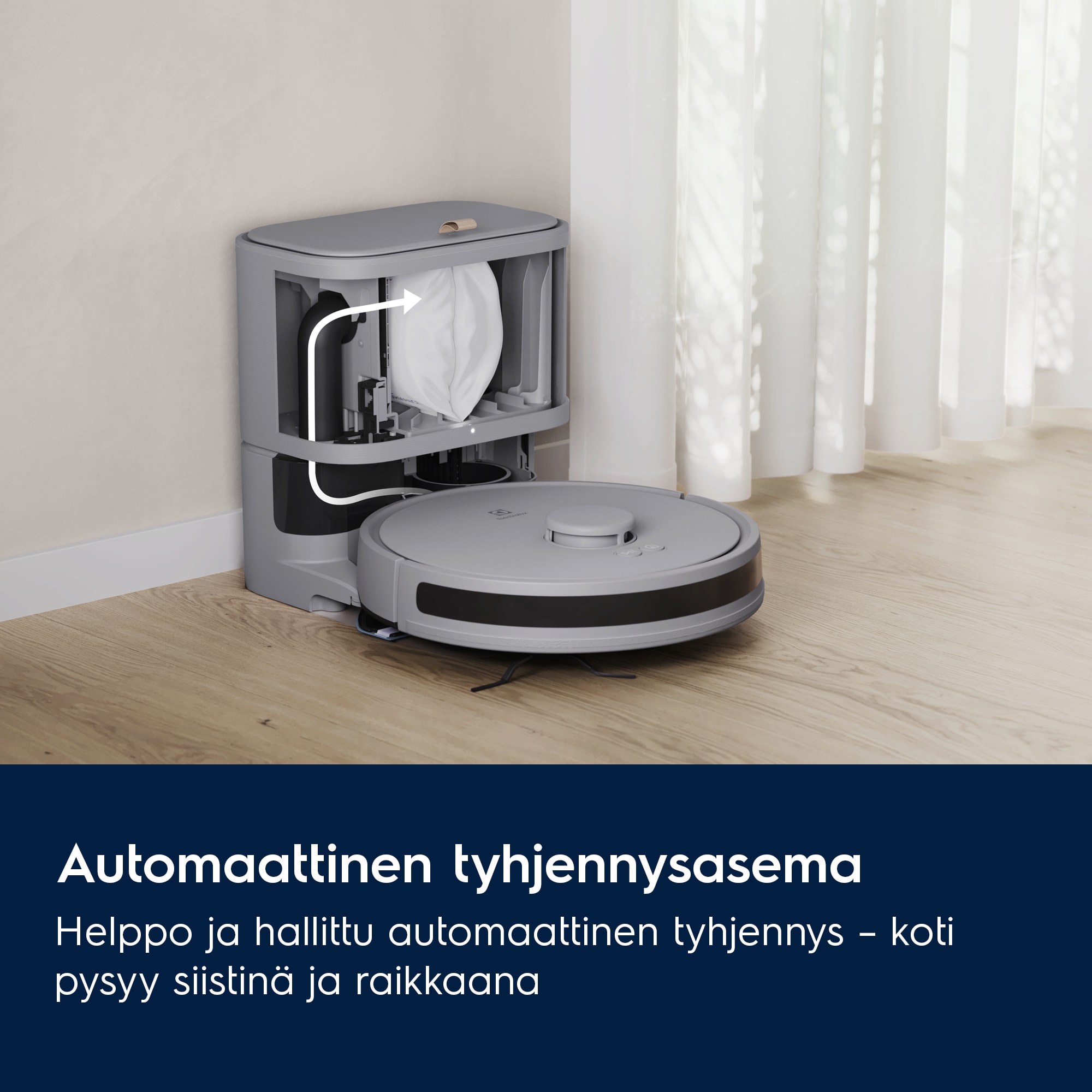 Automaattinen tyhjennysasema lukitsee pölyn ja lian sisäänsä