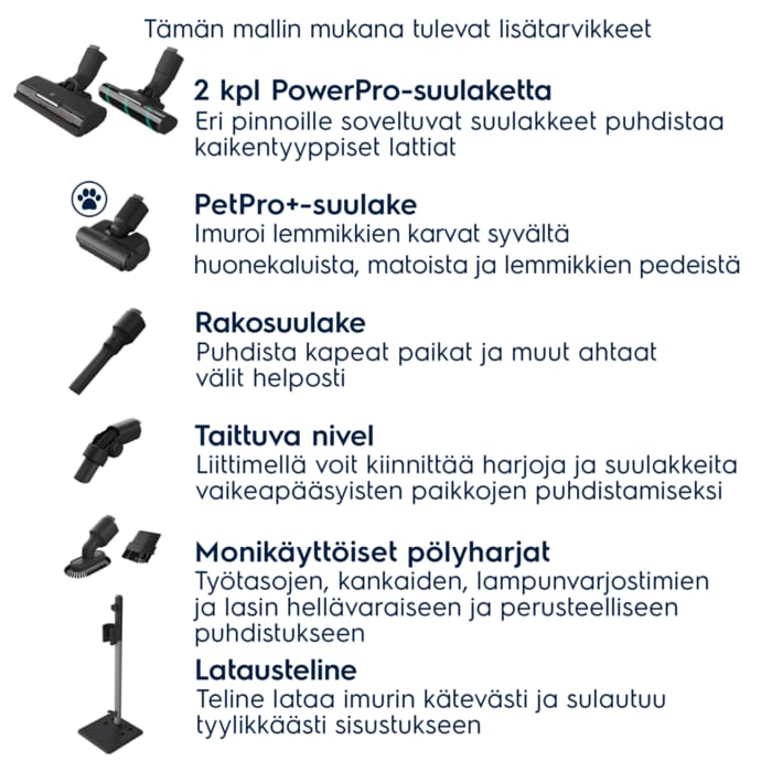 *Valmiiksi koottu imurin kokonaispaino PowerPro multi-surface -suulakkeen kanssa.
